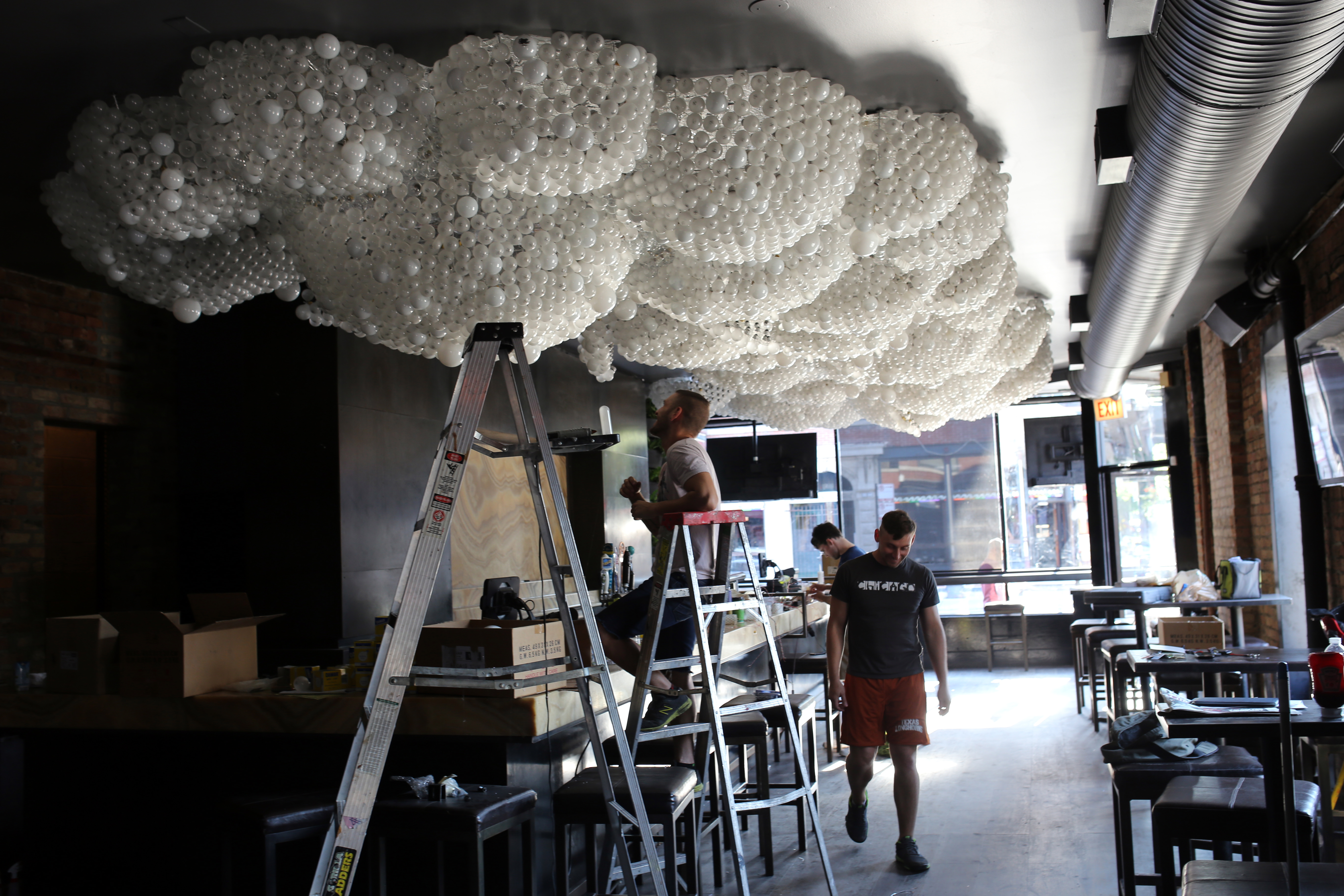 A second miniature CLOUD was created in the far room of Progress Bar, designed to tie the bar together into one cohesive vision.