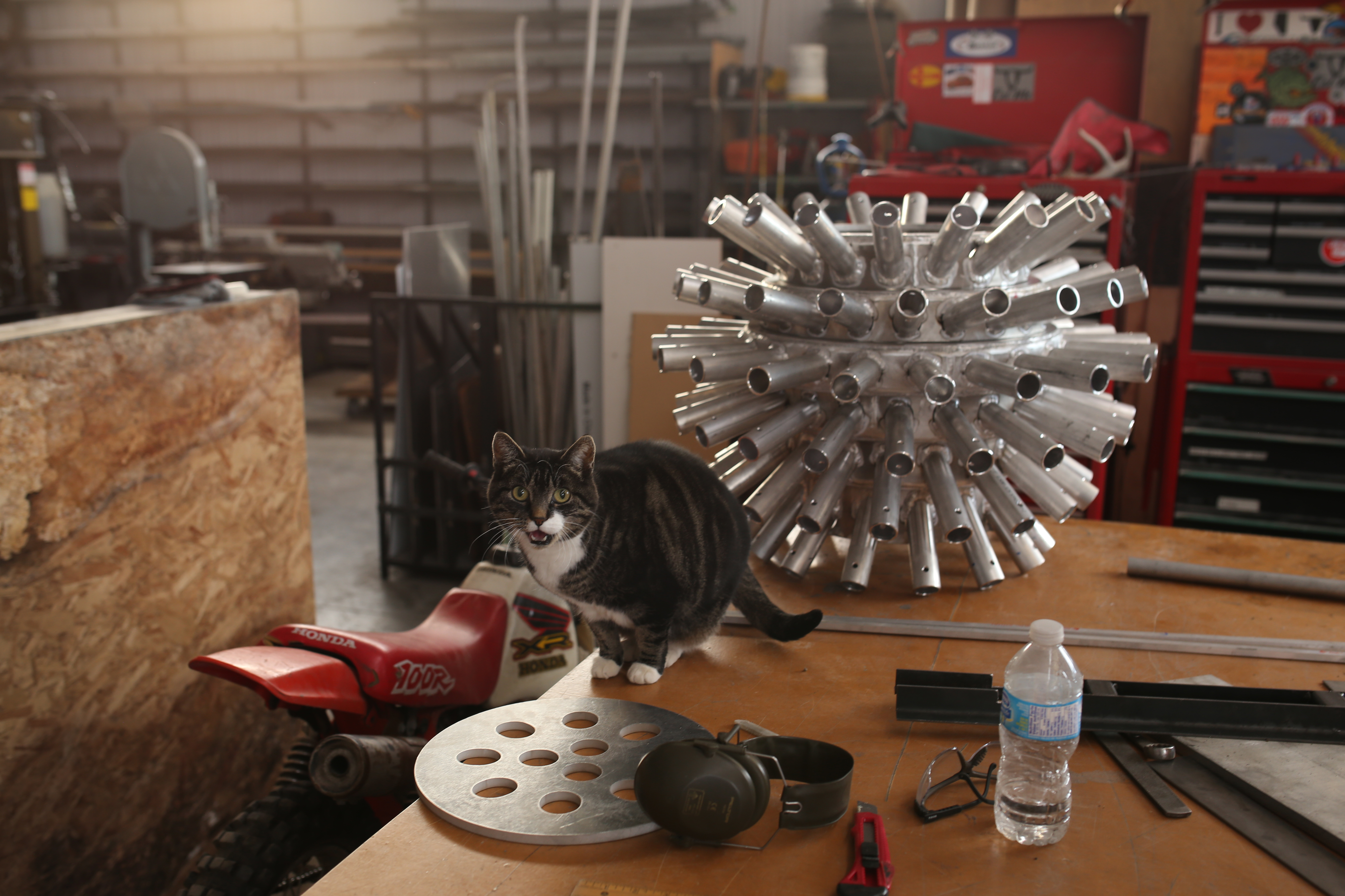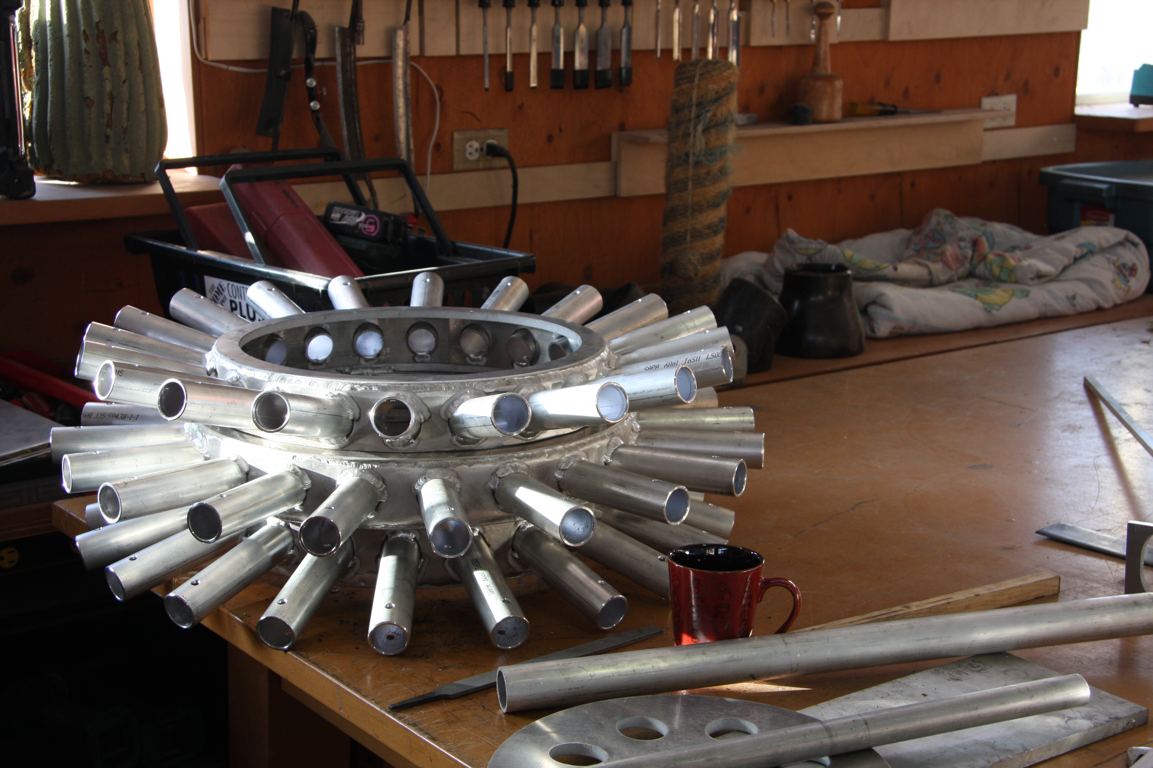 We’ve had the great pleasure of working in a Cochrane-based metal shop called Coyote Works Ltd. Operated by a couple of arts enthusiasts (and artists in their own right), Coyote Works specializes in design, art, and special effects for the silver screen. Set into the rolling foothills along the Rocky Mountains, the shop is charming, wood-heated, and even comes with a shop cat. We felt incredibly lucky to be working in this space – our thanks to Dave and Jodie for being so accommodating!