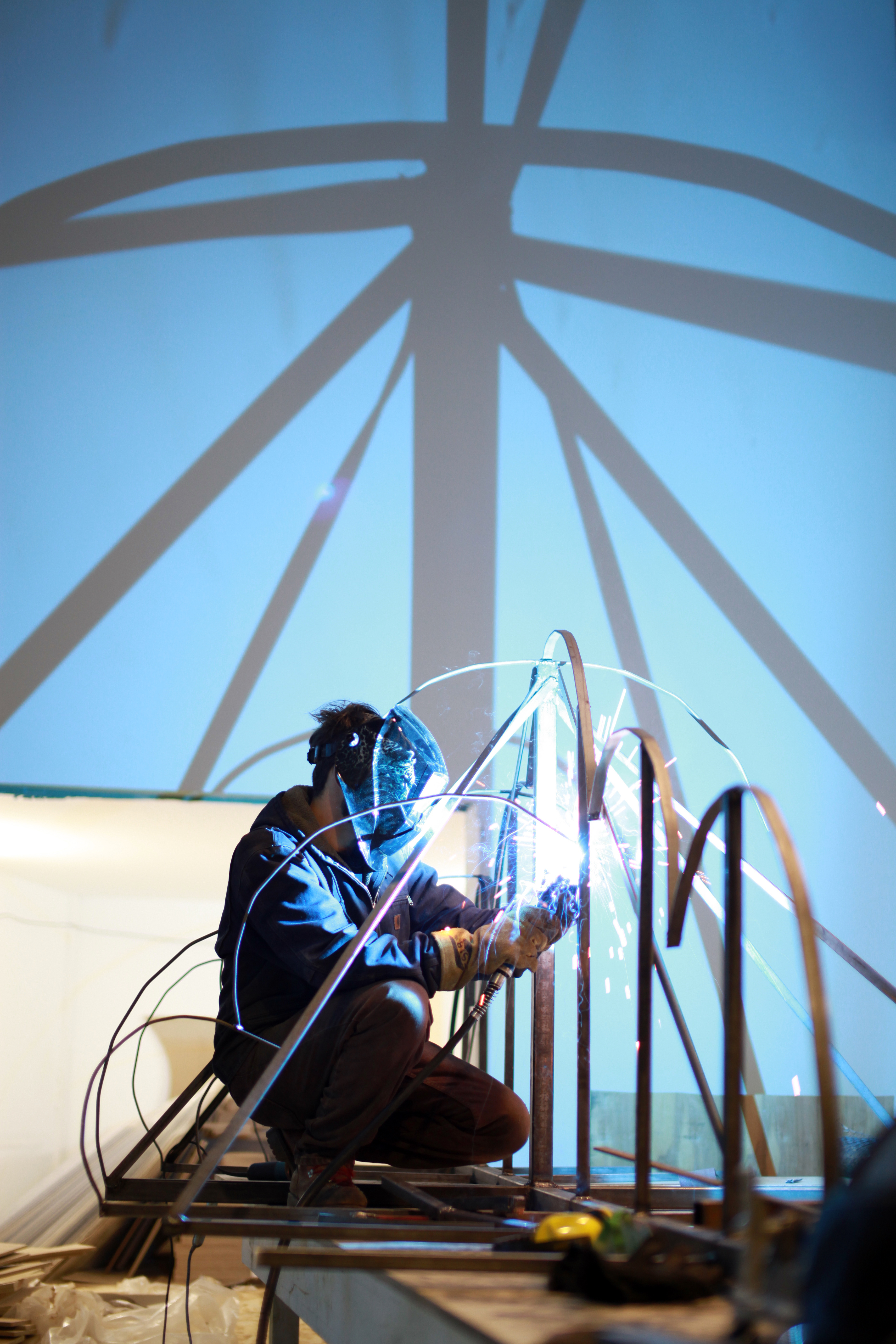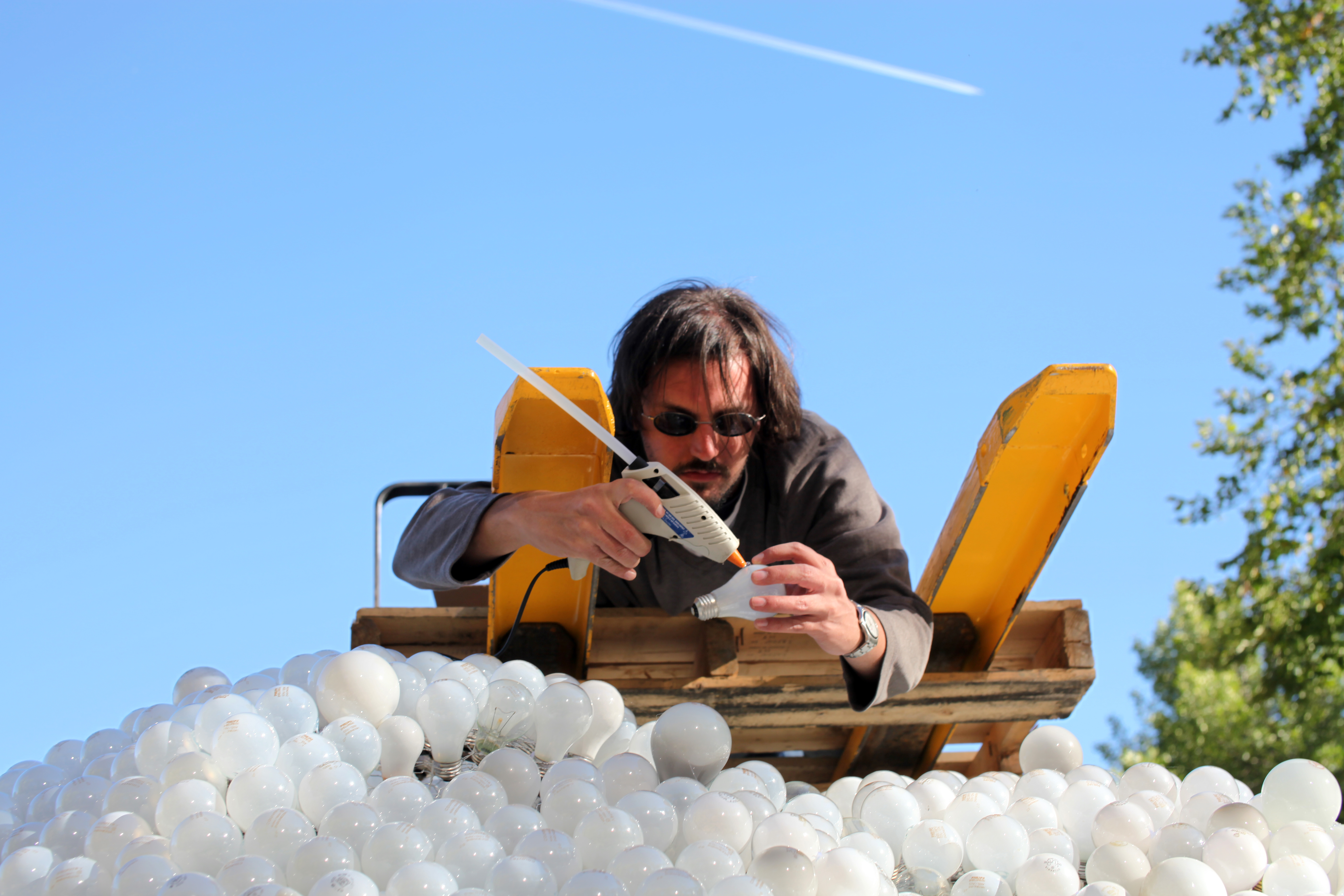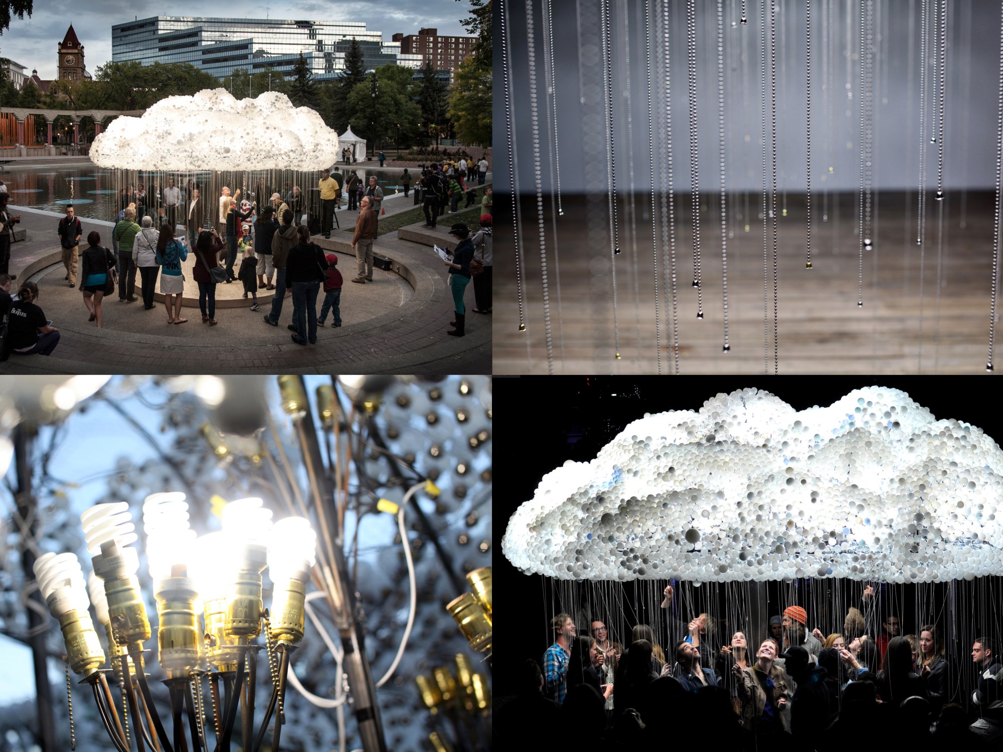 Of course, when Wayne Garrett and I built CLOUD, we did not intend to spend the next two years thinking about the social effects of light on people. CLOUD was a community project, constructed with the help of friends and the kindness of strangers. Drawing from cartoon aesthetics and the vast Alberta skies, the sculpture was constructed from 1500 lbs of steel and 6000 incandescent light bulbs (new and burnt out).