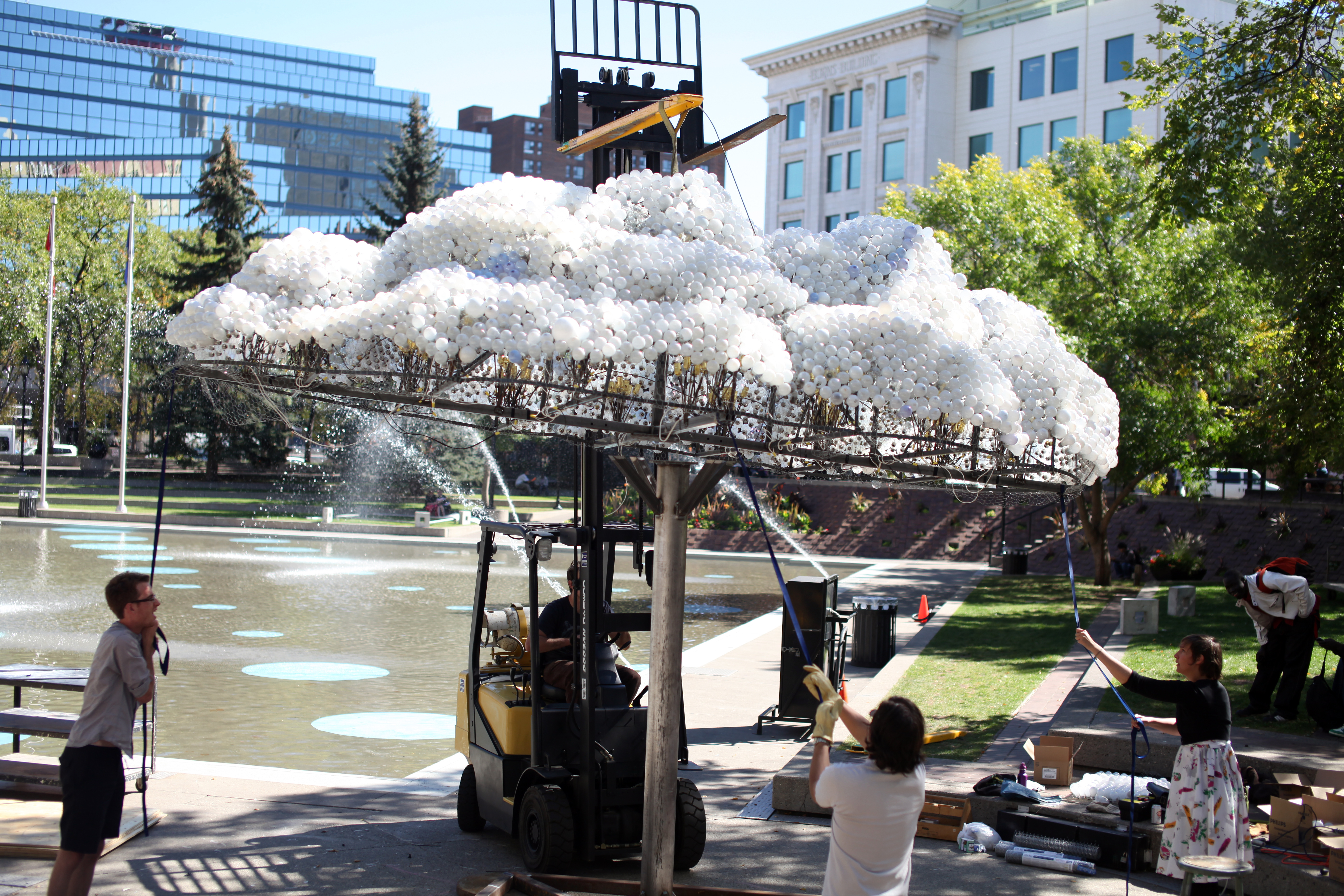 In different places, CLOUD has been celebrated, embraced, cursed, and enthusiastically abused, but she has also opened doors and windows into the unconscious minds of cities. As Calgary’s second Nuit Blanche draws near (7 pm – 1 am tonight!) we turn our thoughts to the value of temporary public art and its effect on urban spaces. Nuit Blanche is not just about showcasing contemporary public artworks, but about unifying a critical mass of people using art as a catalyst for renewed vision of the world. By transforming places for short periods of time, public art incites playful re-imagination of communal spaces, challenging their function, and exciting potential for ongoing change and re-growth. Art creates an access point for the city; the city creates an access point for art.