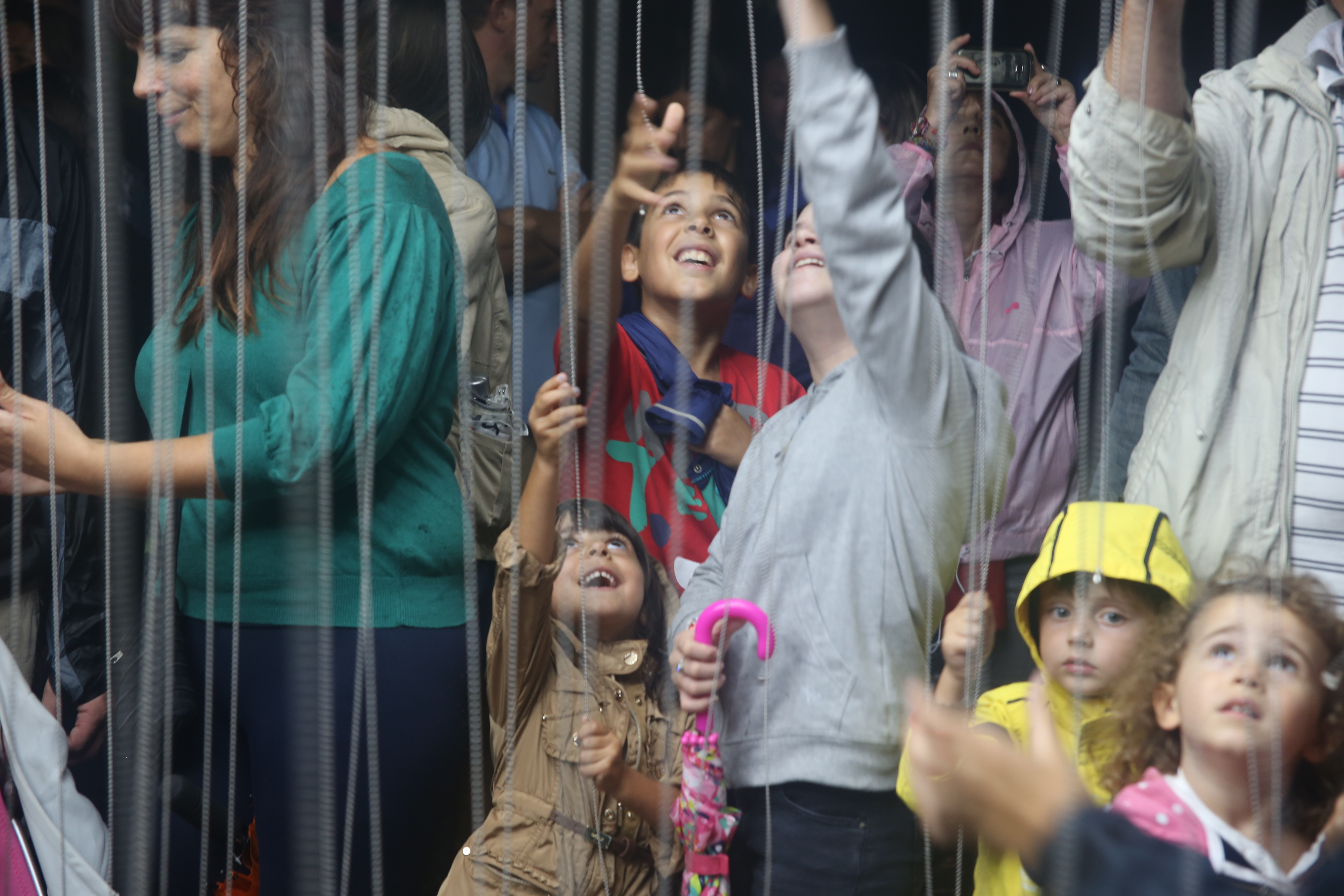 Within professional art circles, interactive art is sometimes criticized for being too appealing, accessible, and so caught up in notions of entertainment that it neglects the meat of a concept. This can be the case, but interactive work also provides a tangible, real-world, interpersonal connection, building relationships and consequences that touch people deeply because they are permitted to touch it. The first Nuit Blanche Calgary championed works of this sort (whether BGL’s Carrousel or Sophie Farewell’s However you do it… Consider the stars). As CLOUD travels, the vocabulary of this conversation broadens, and CLOUD’s interactive elements become an international gauge of cultural similarities and differences. Inevitably, this conversation becomes political: by working together (or not working together) what do people reveal about themselves as a group? How does temporary public art affect the social dynamic of spaces?