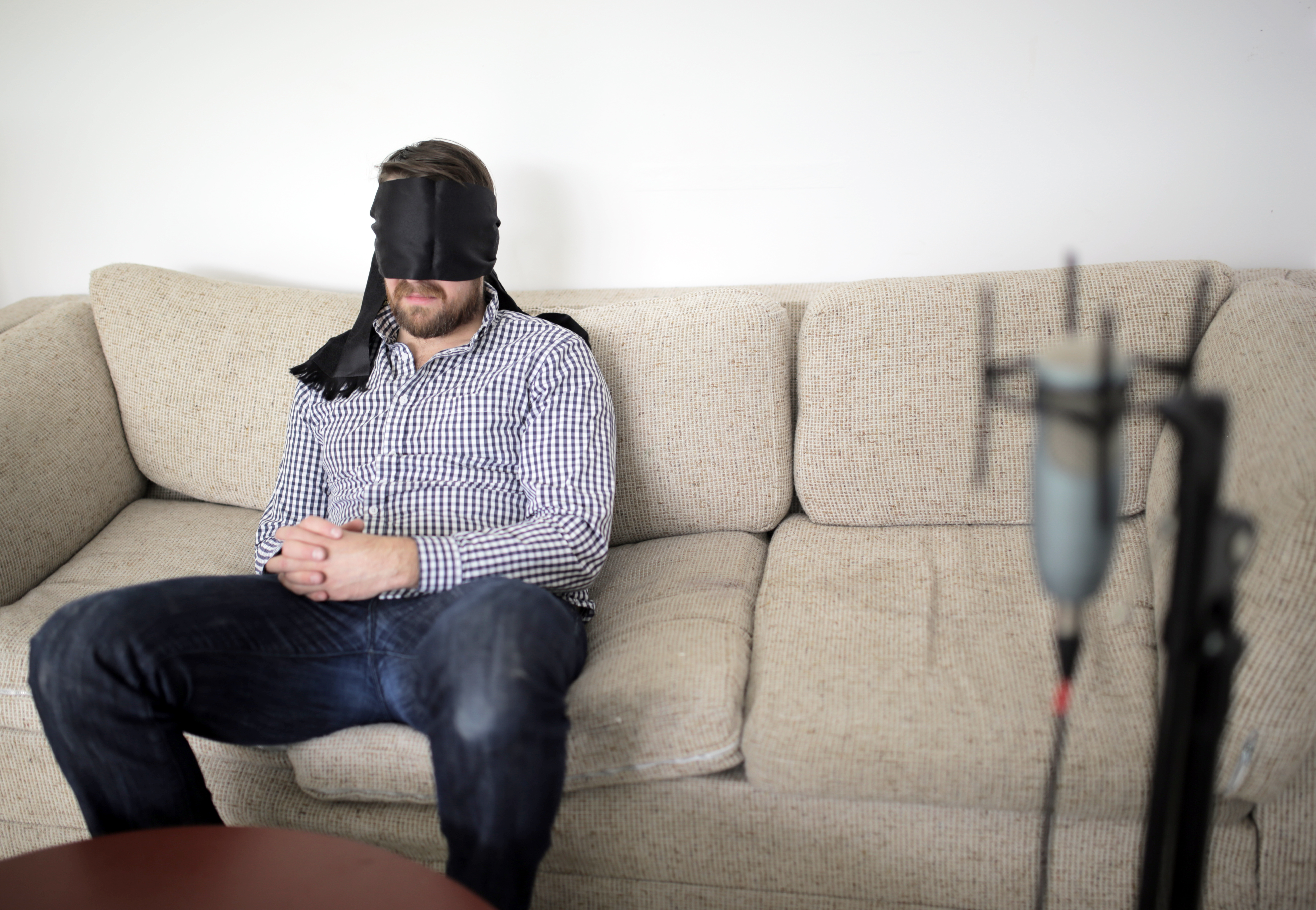 Interviewees were invited to our studio, where we asked them to blindfold themselves, creating a comfortable state of artificial darkness. In this environment, we asked them a series of questions centering around the tension between light + dark, clarity + disorientation, intimacy + fear, asking: why are we afraid of the dark? Is our fright learned, perceived, or real? Are light and darkness equal opposites? Is darkness a presence or an absence? And so forth.