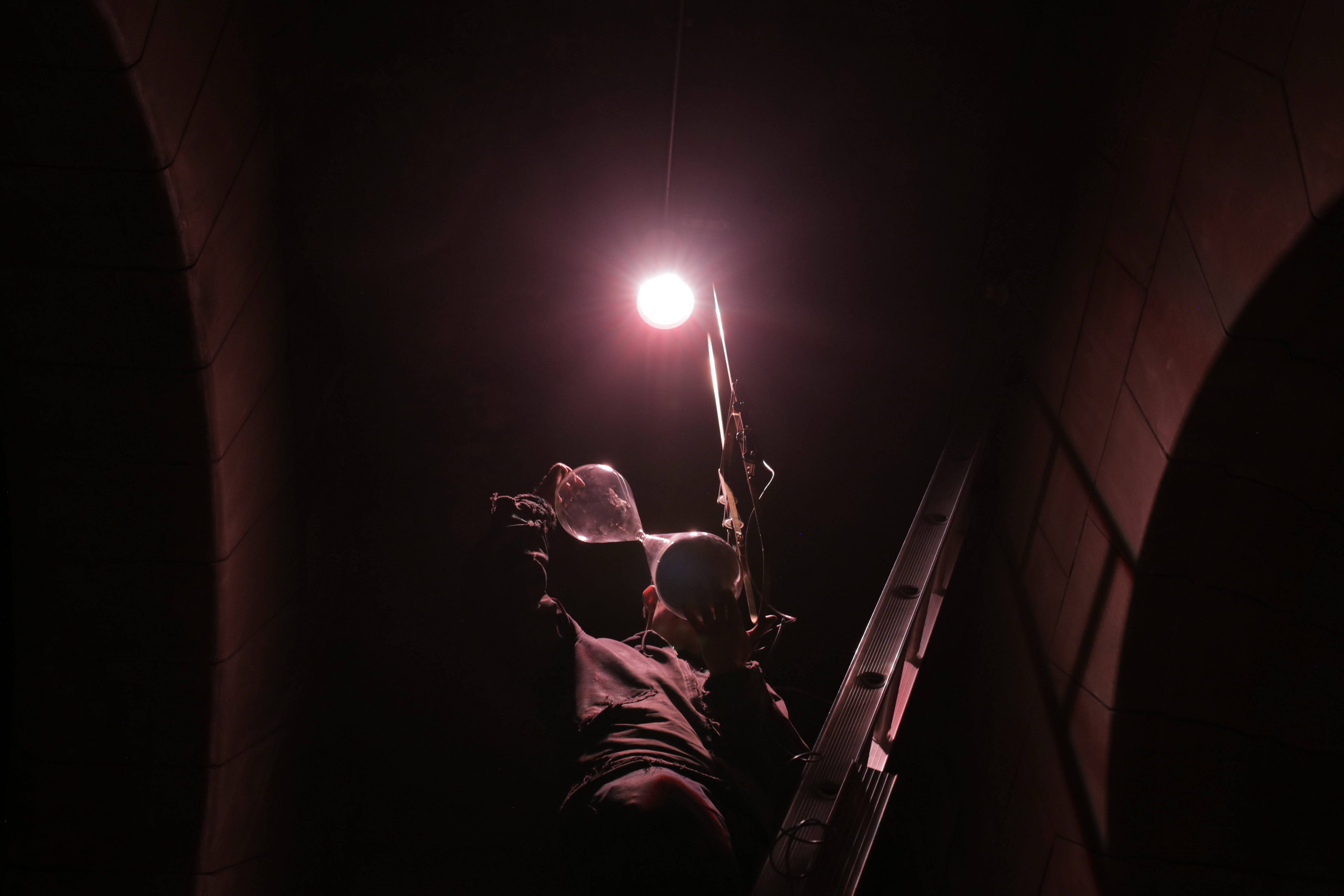 The hourglasses are filled with sand crushed from sandstone bricks collected during cSPACE’s renovations. Lane Shordee crushed the sands by hammer and bespoke device, refining the material into smaller and smaller particles. Because of the geological time it takes to form sandstone in the earth, we thought of this process as releasing time from the rock.