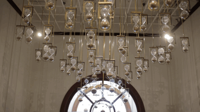 Time has become a thematic of the building. Yesterday, Today, Tomorrow speaks to the difference between time as a pragmatic measurement (Chronos) and time as an experience (Kairos), half the hourglasses measure universal time like a clock, and half measure personal increments of time collected through a public Time Gathering.