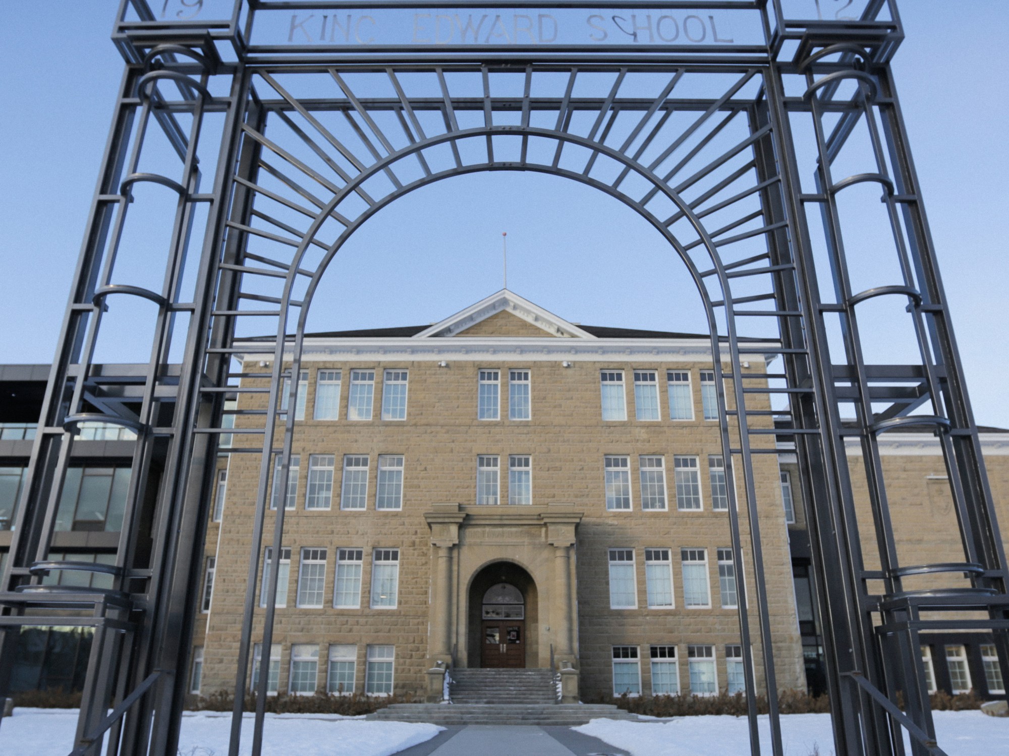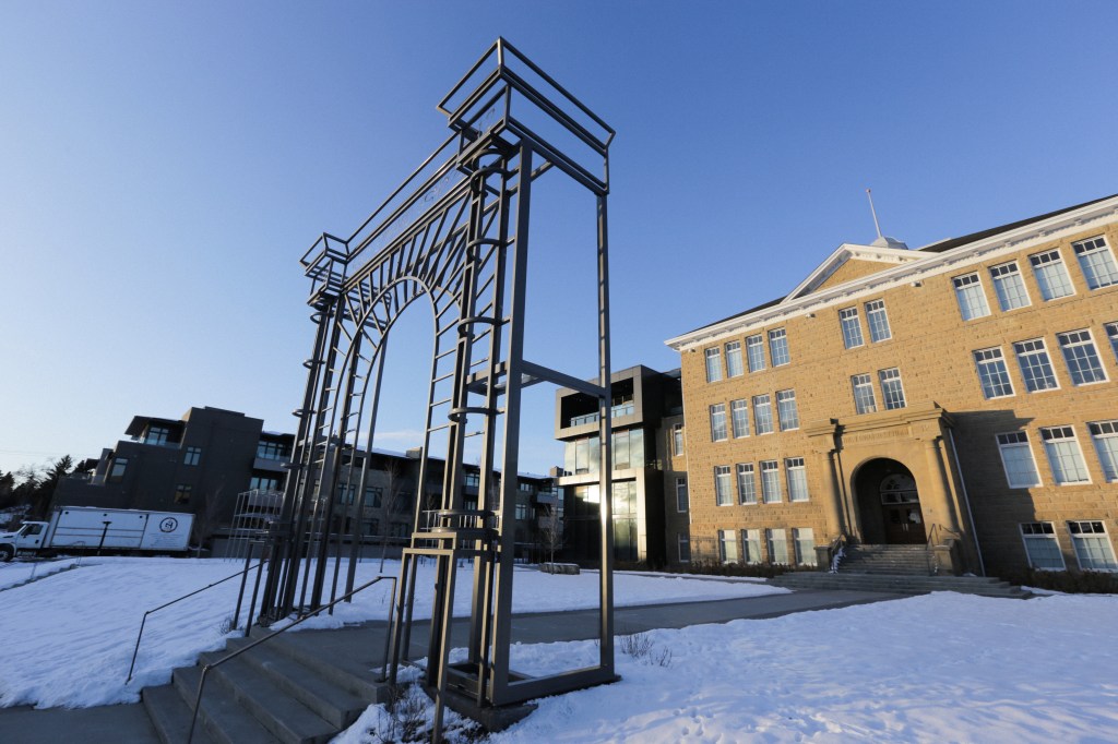 AFTER IMAGE is modelled after the arched entrance of the historic sandstone school, dating back to 1912 when Calgary was known for sandstone architecture including many institutional buildings and City Hall. We designed the sculpture with Lane Shordee, our longtime friend and collaborator on many projects, (In the Belly of a Bear, Without Eyes, Yesterday, Today, Tomorrow, and ongoing project The Wandering Island).