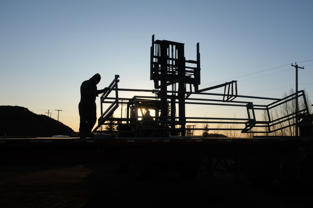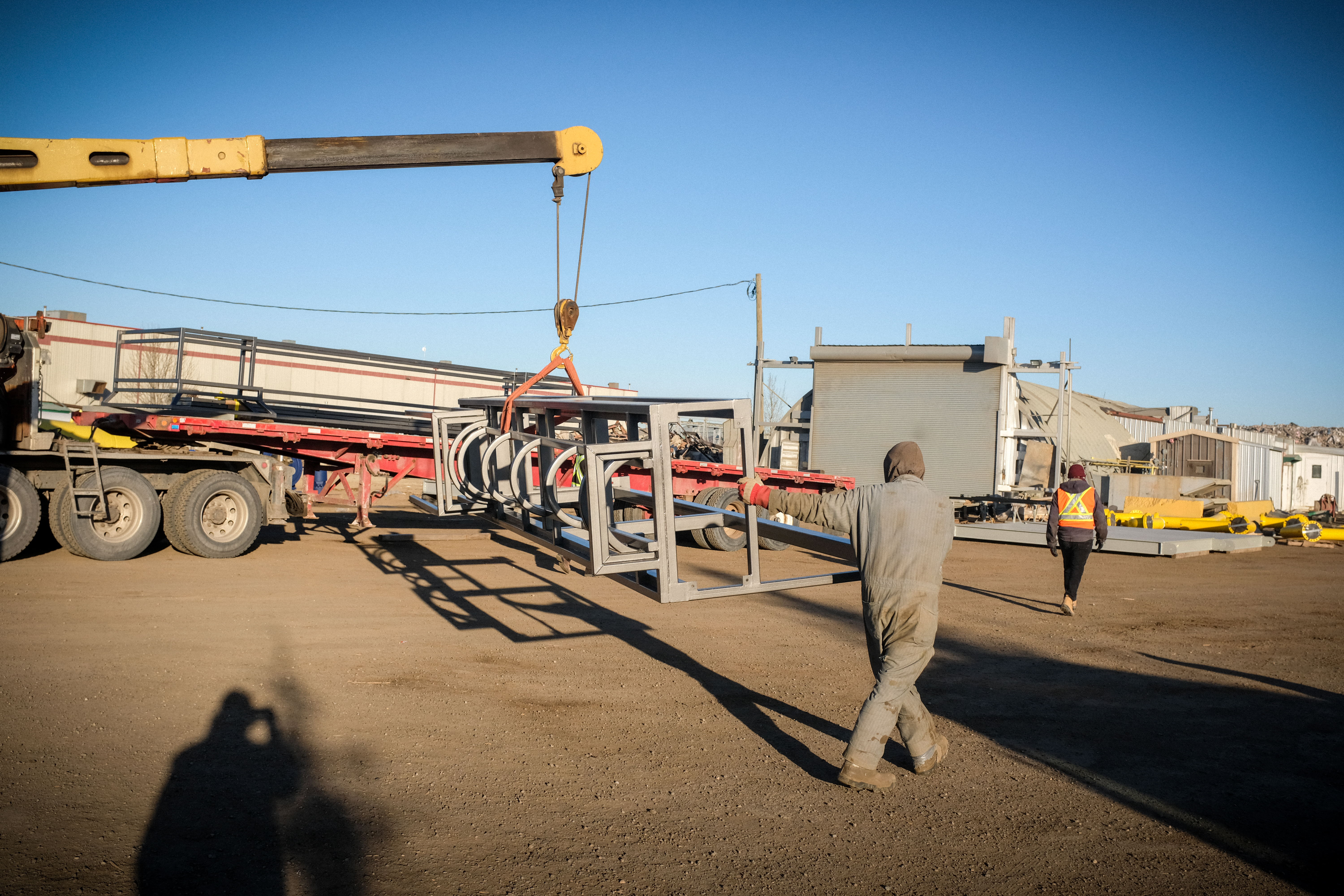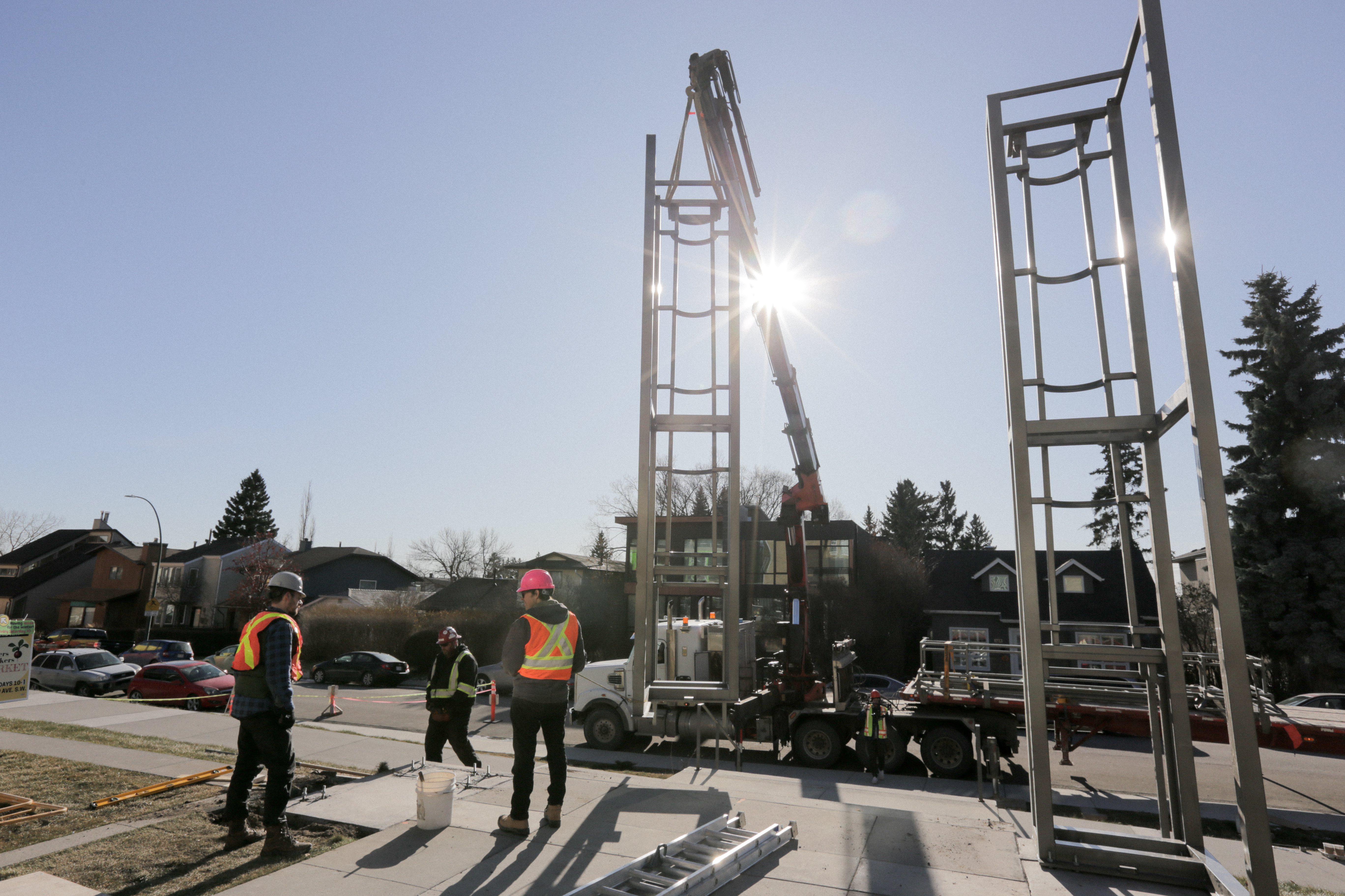 Installation day started early in the industrial district. With the help of Wayne’s well-honed Tetris skills, we managed to fit all the pieces of the sculpture onto one flatbed truck load.