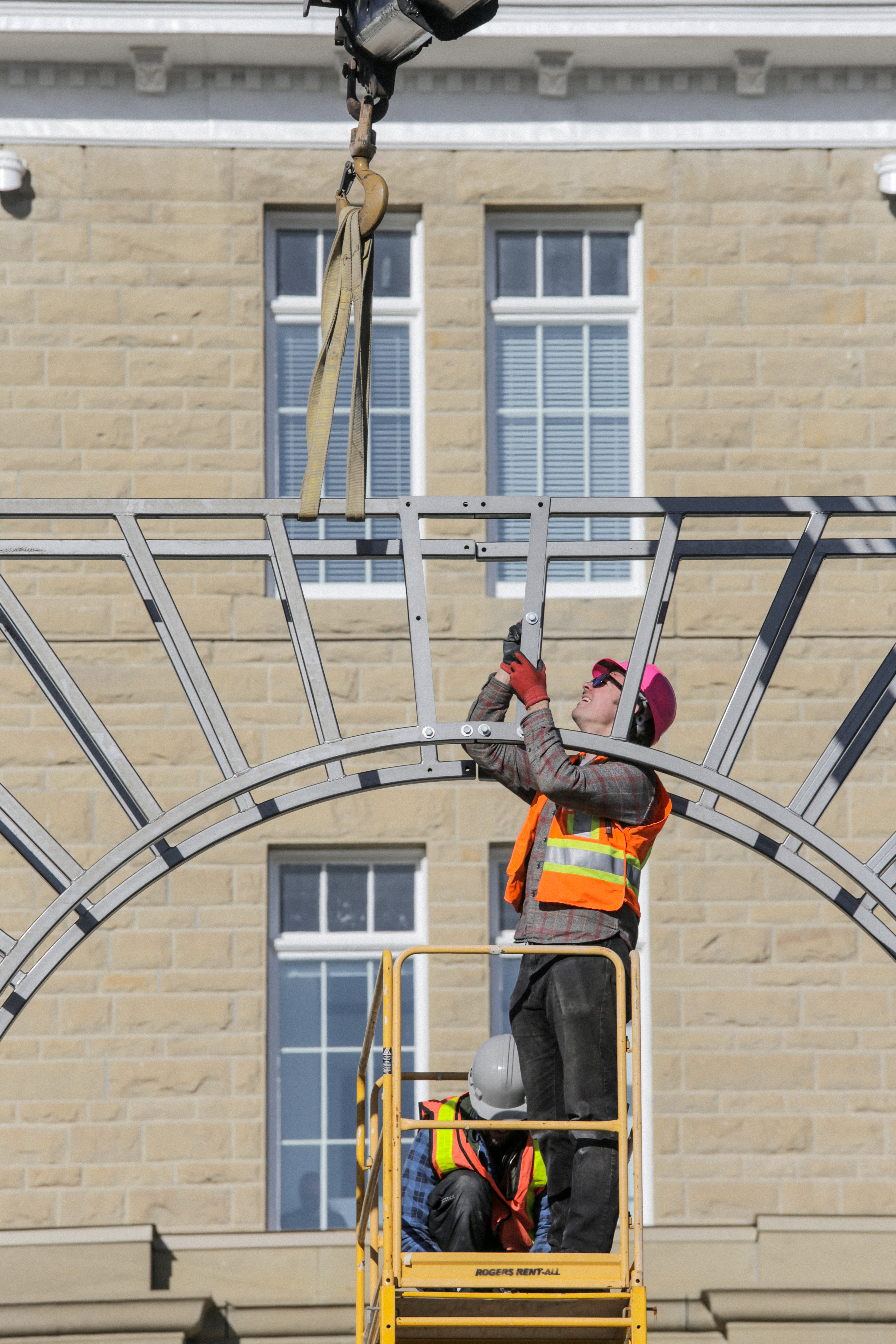 Onsite, we worked with the crane-truck operator to install each piece of the sculpture and fasten them together.