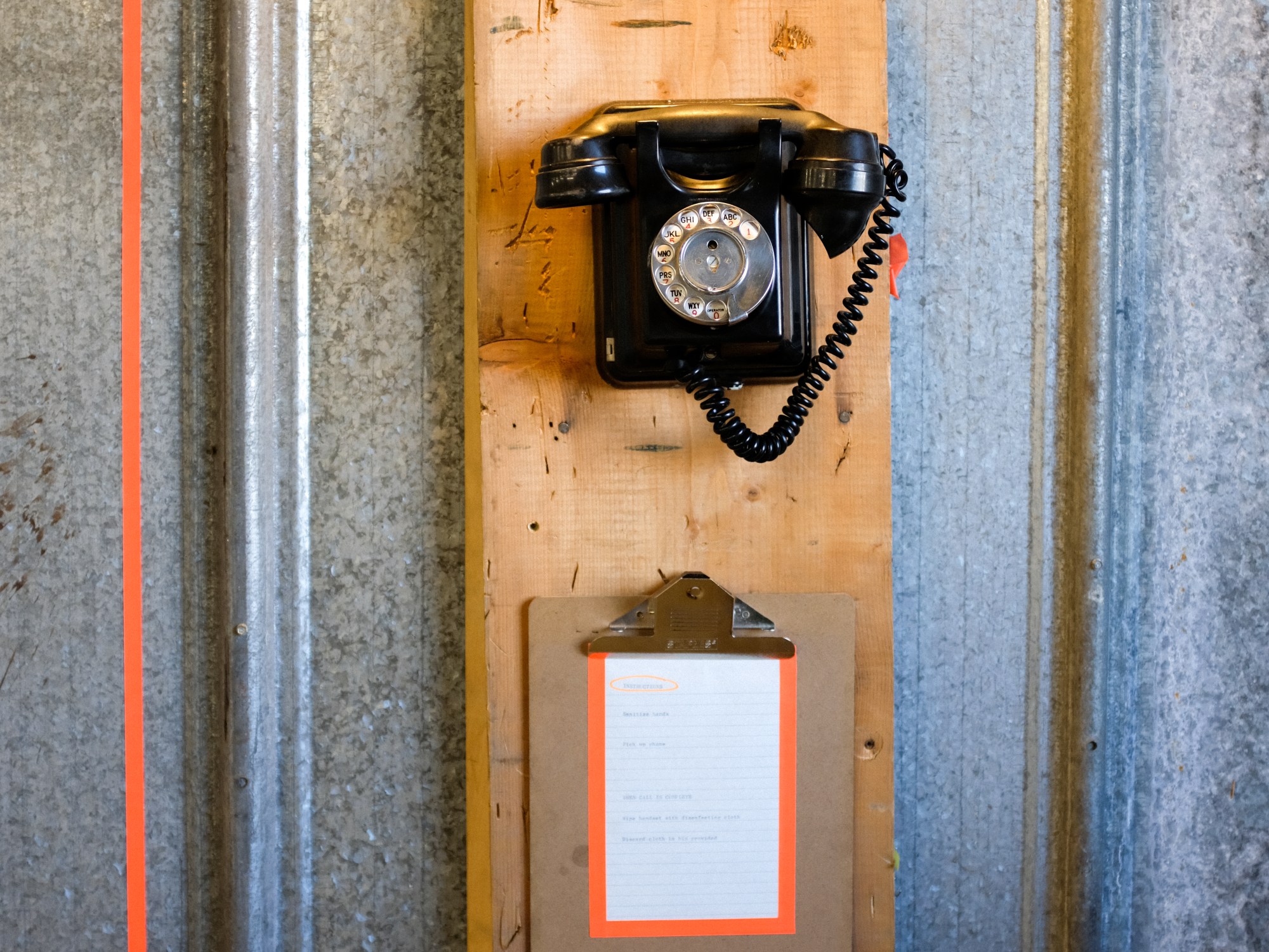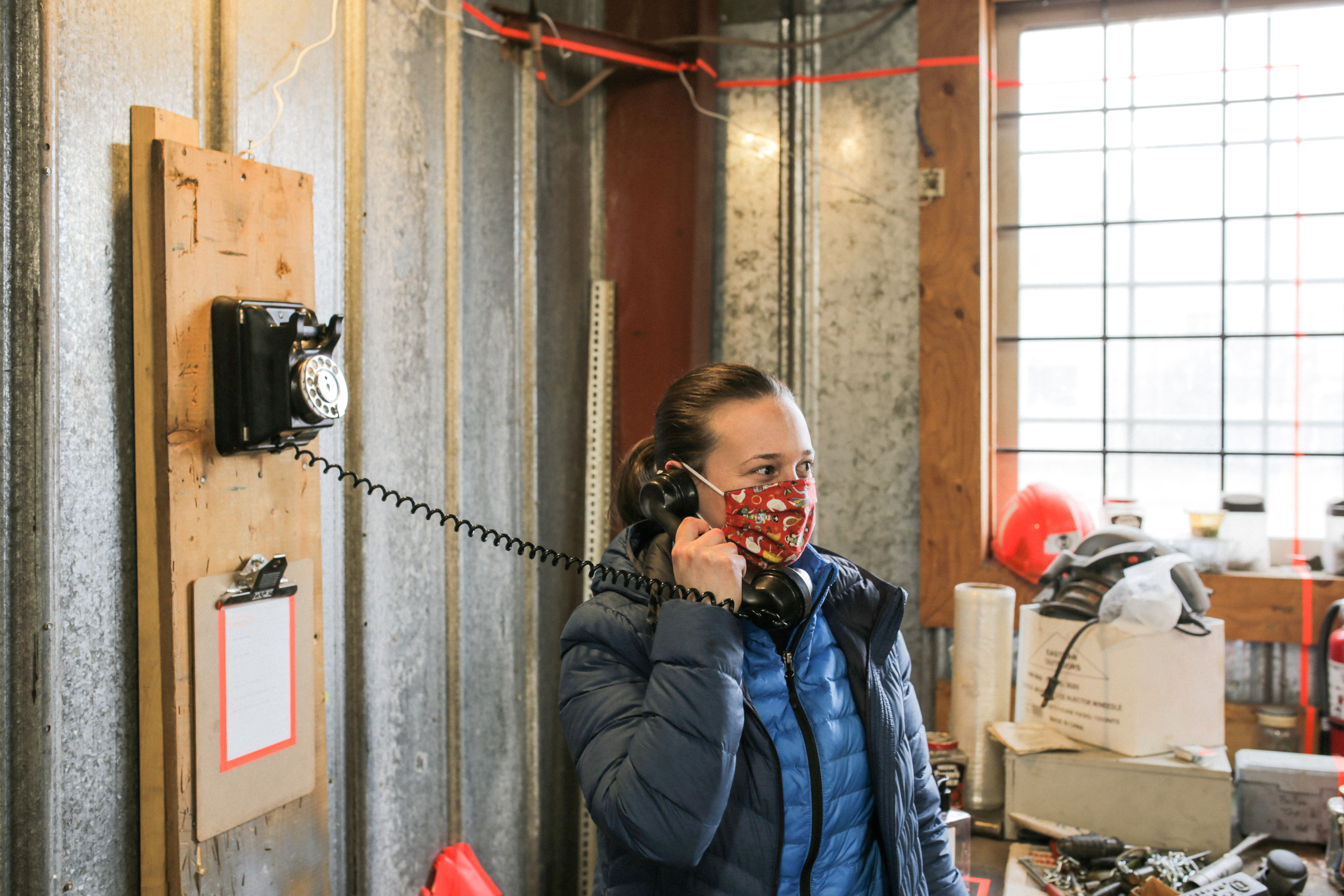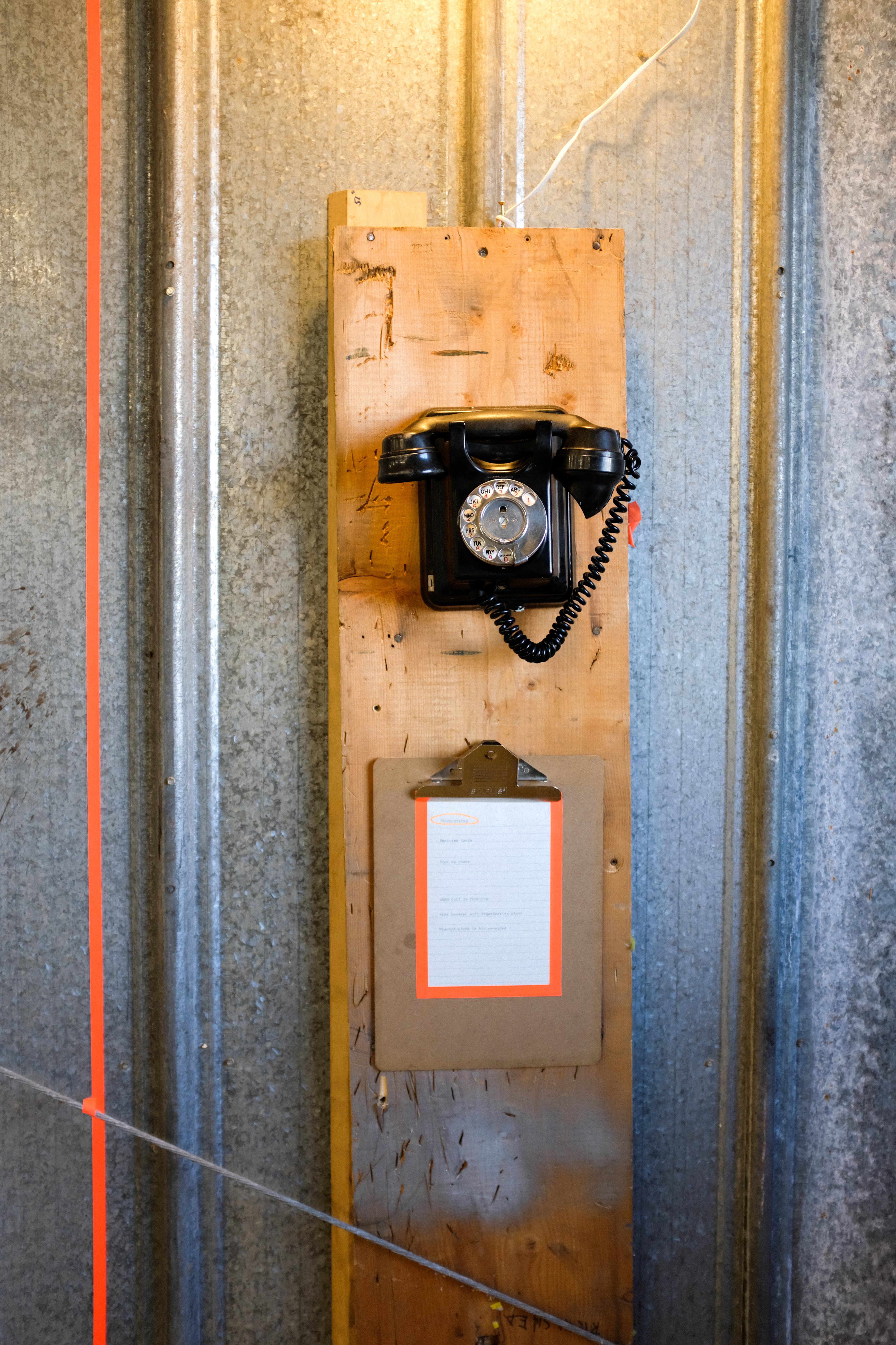 Phonin’ it in utilizes existing phone lines, vintage telephones, and a custom telecommunications to create an automatic-dialing, internal telephone system inside the formerly utilitarian warehouse space.
