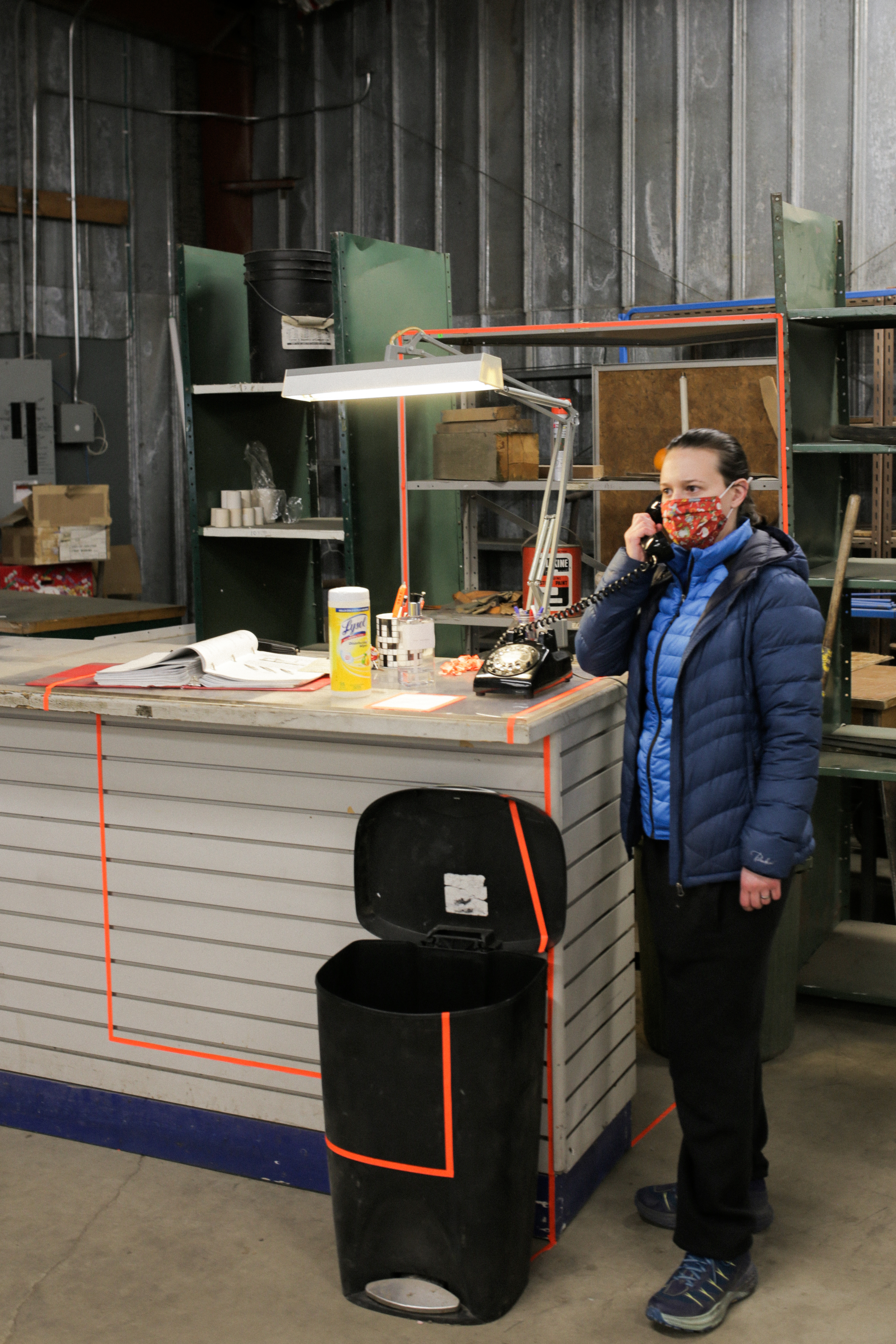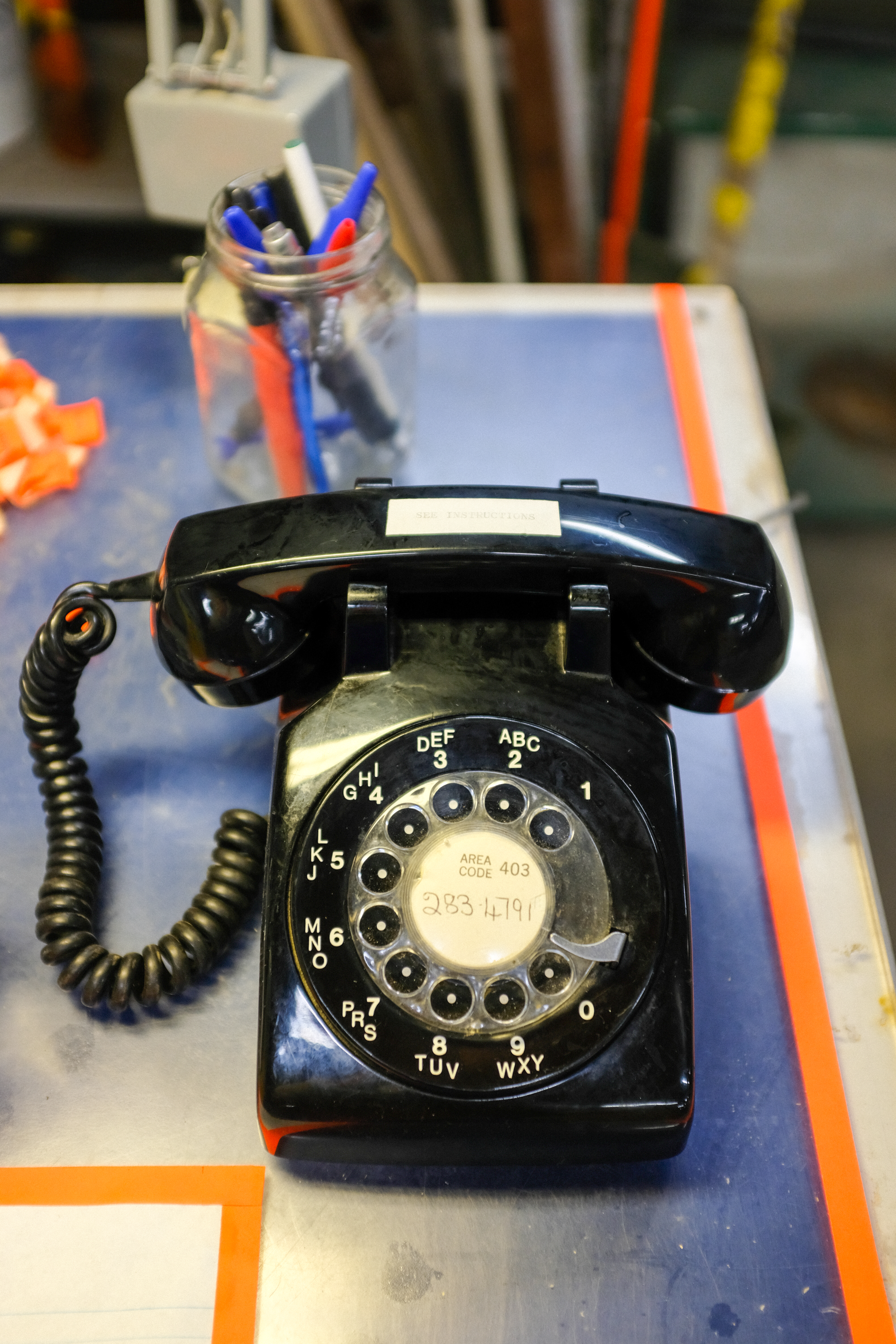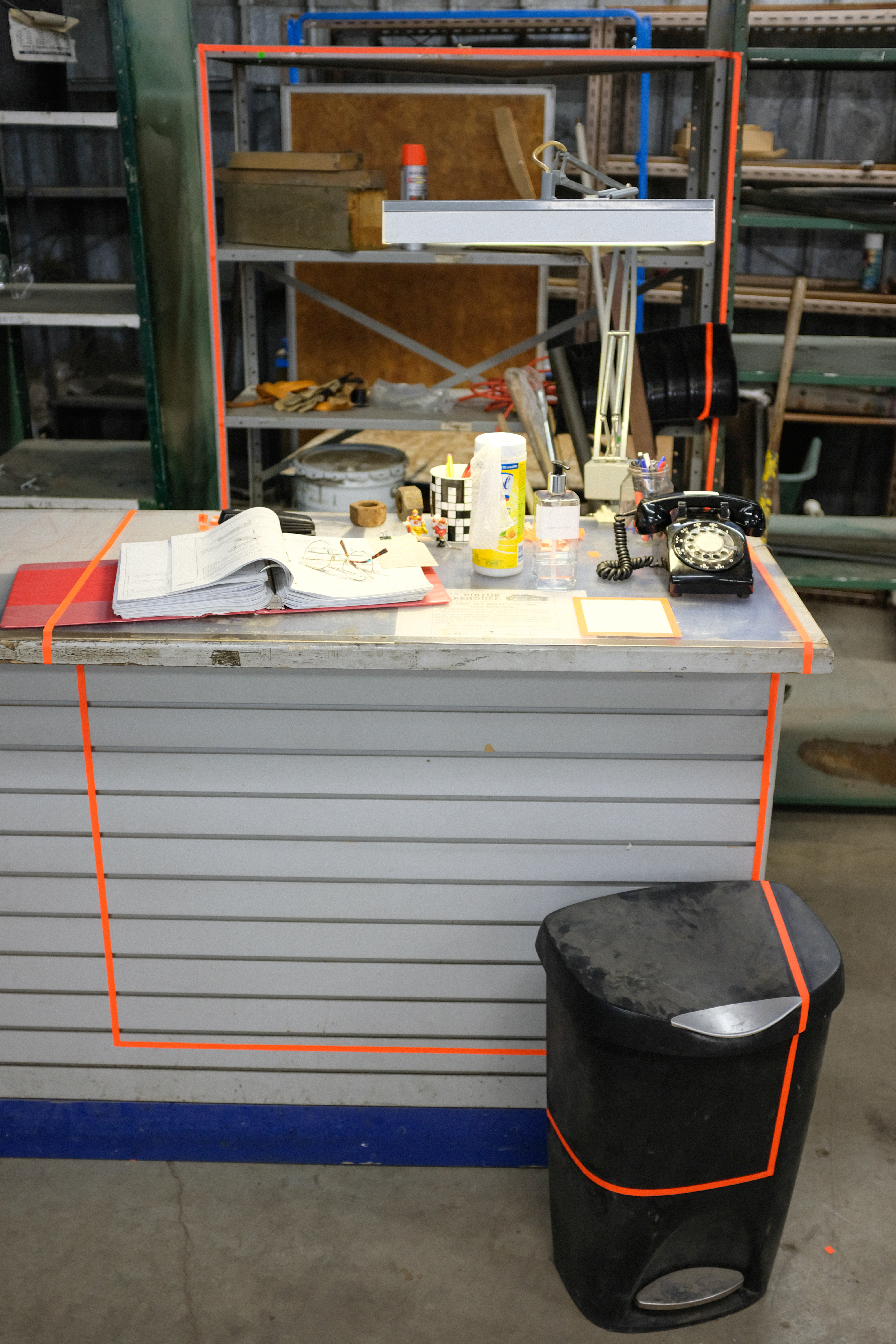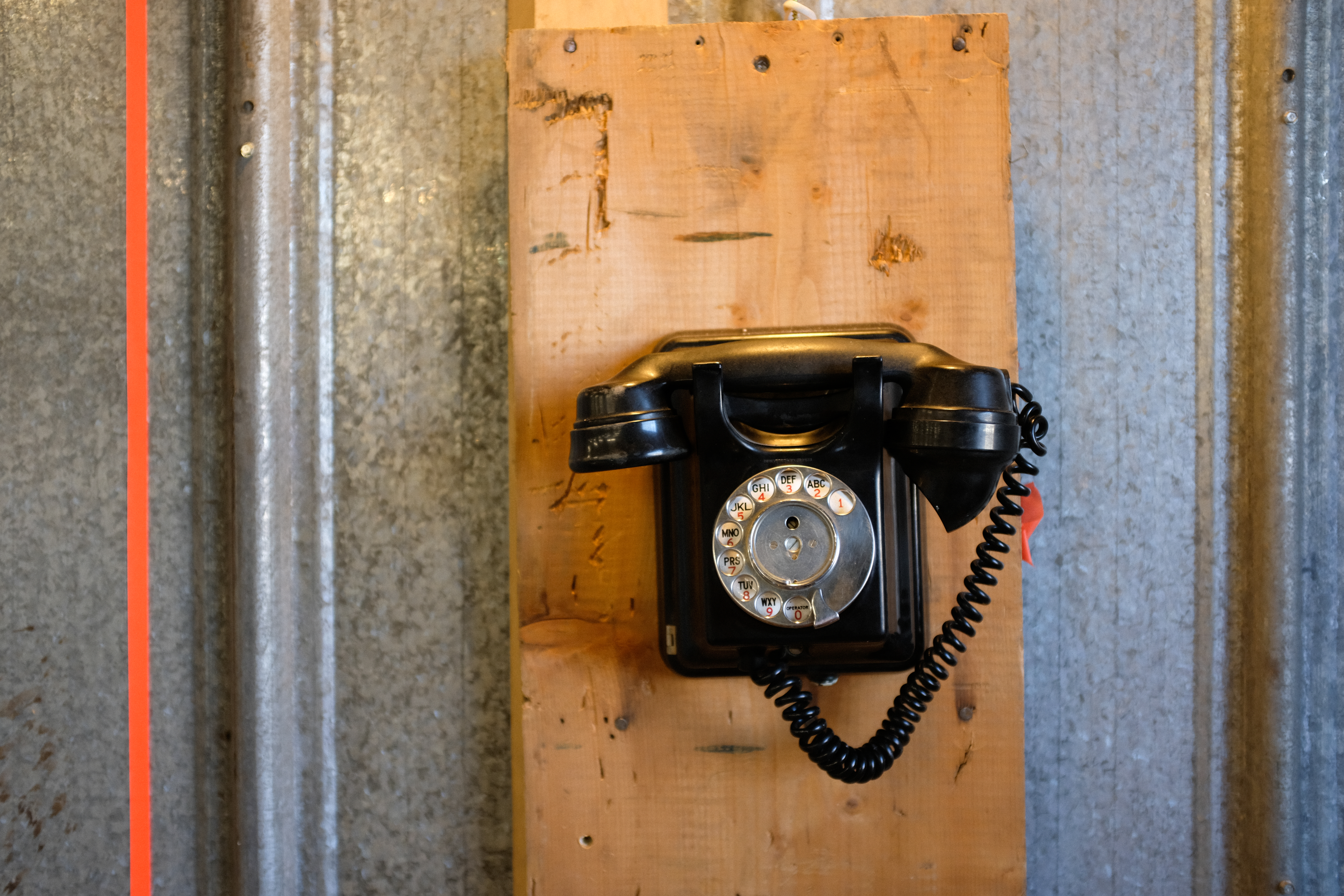 Phonin’ it in utilizes existing phone lines, vintage telephones, and a custom telecommunications to create an automatic-dialing, internal telephone system inside the formerly utilitarian warehouse space.