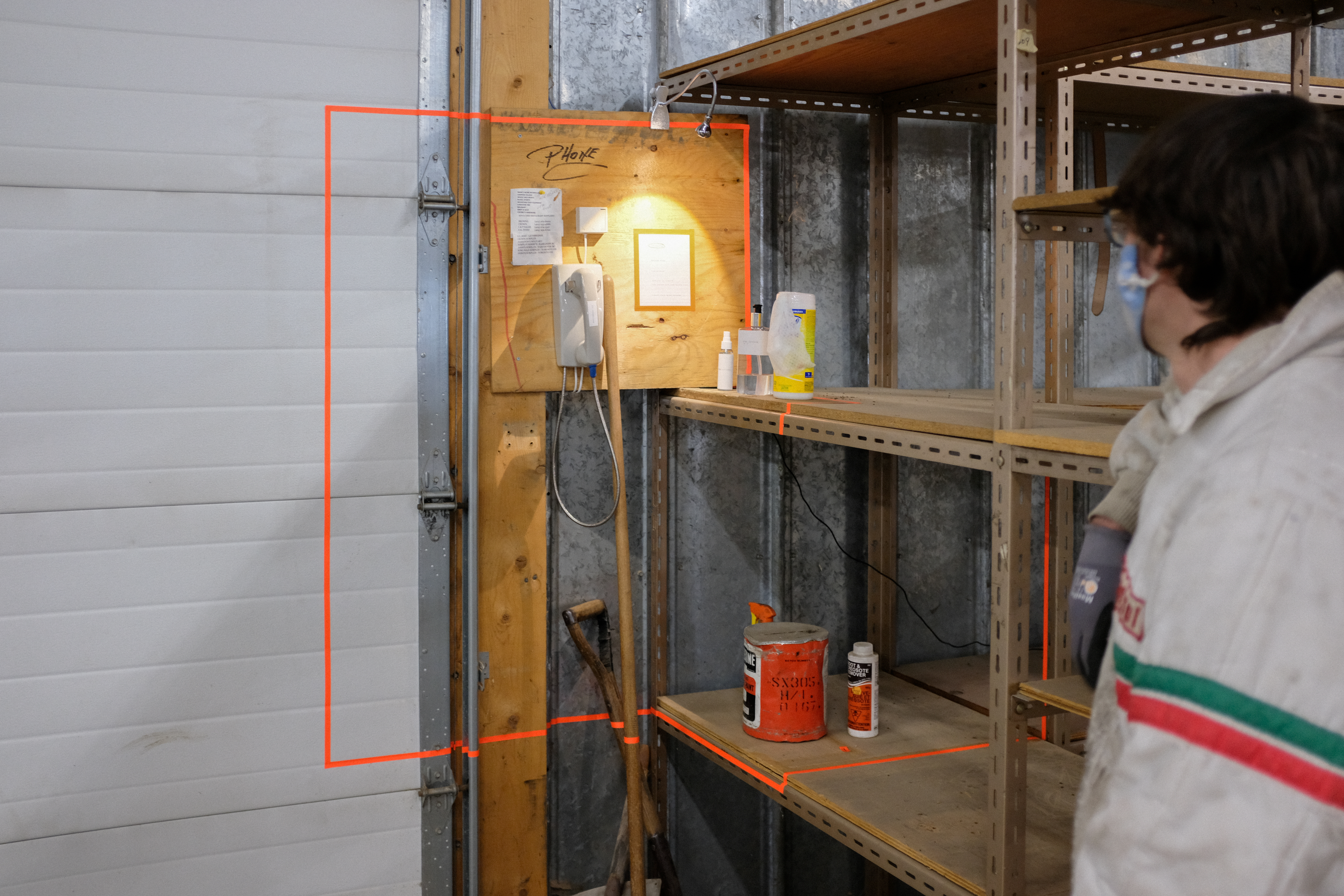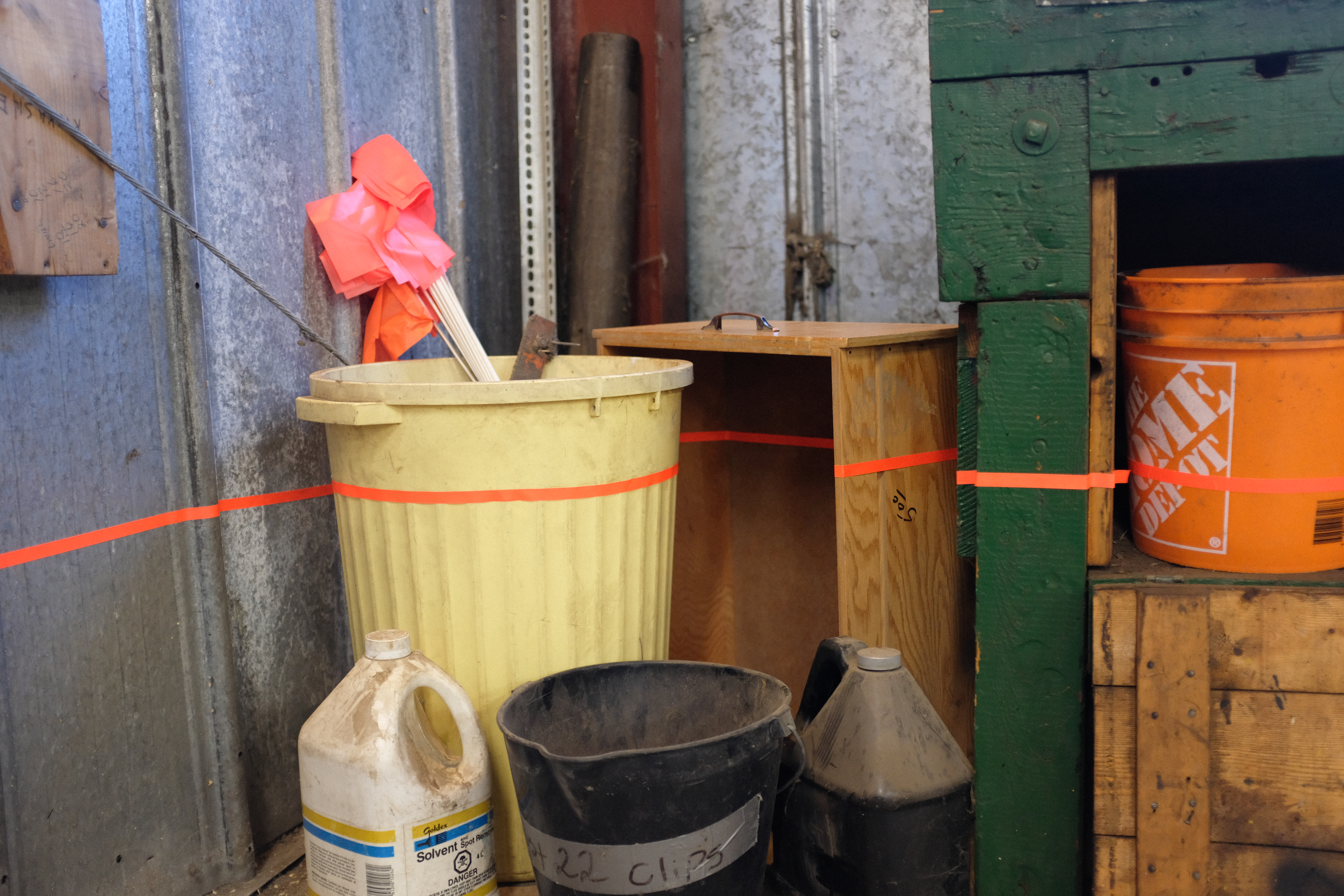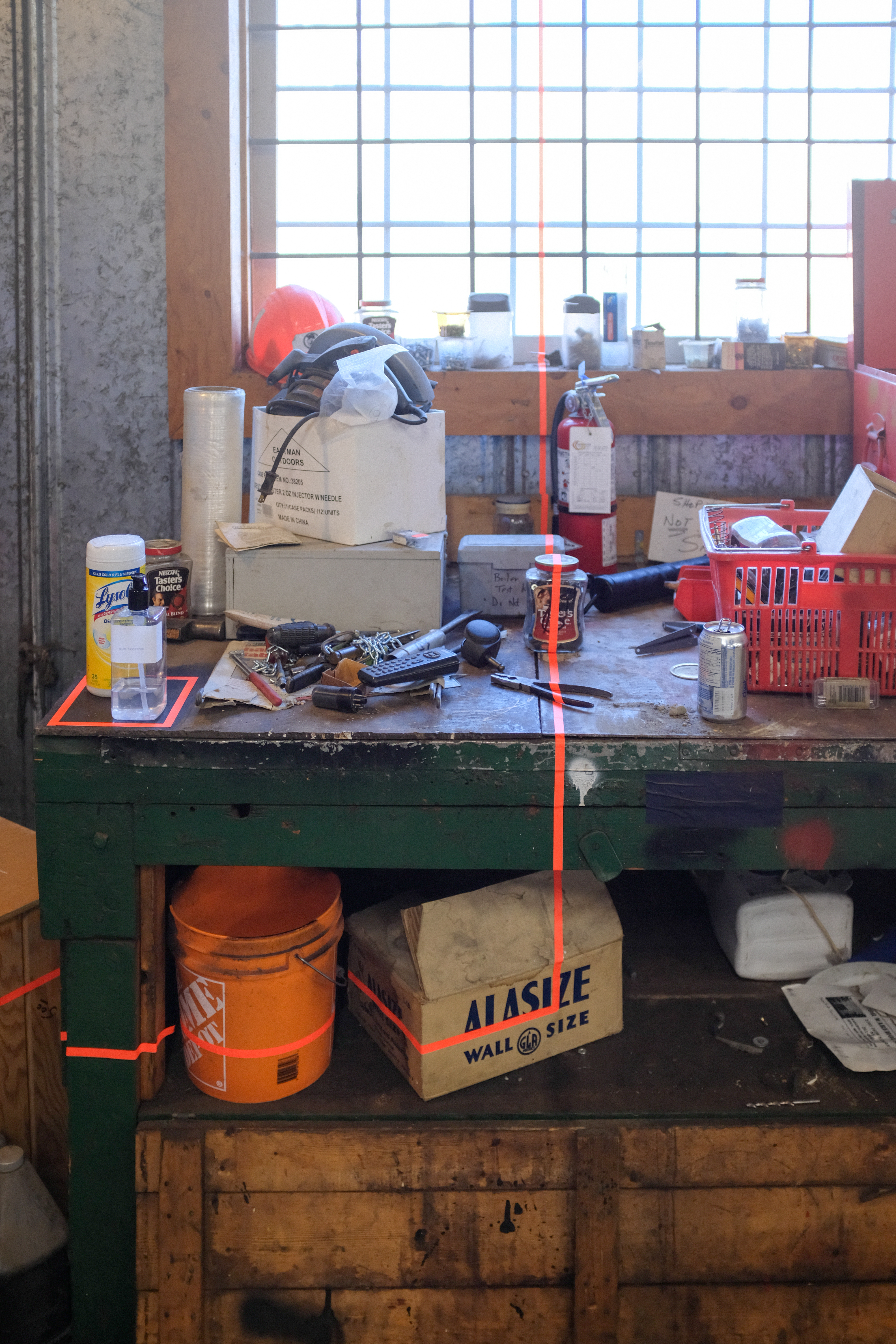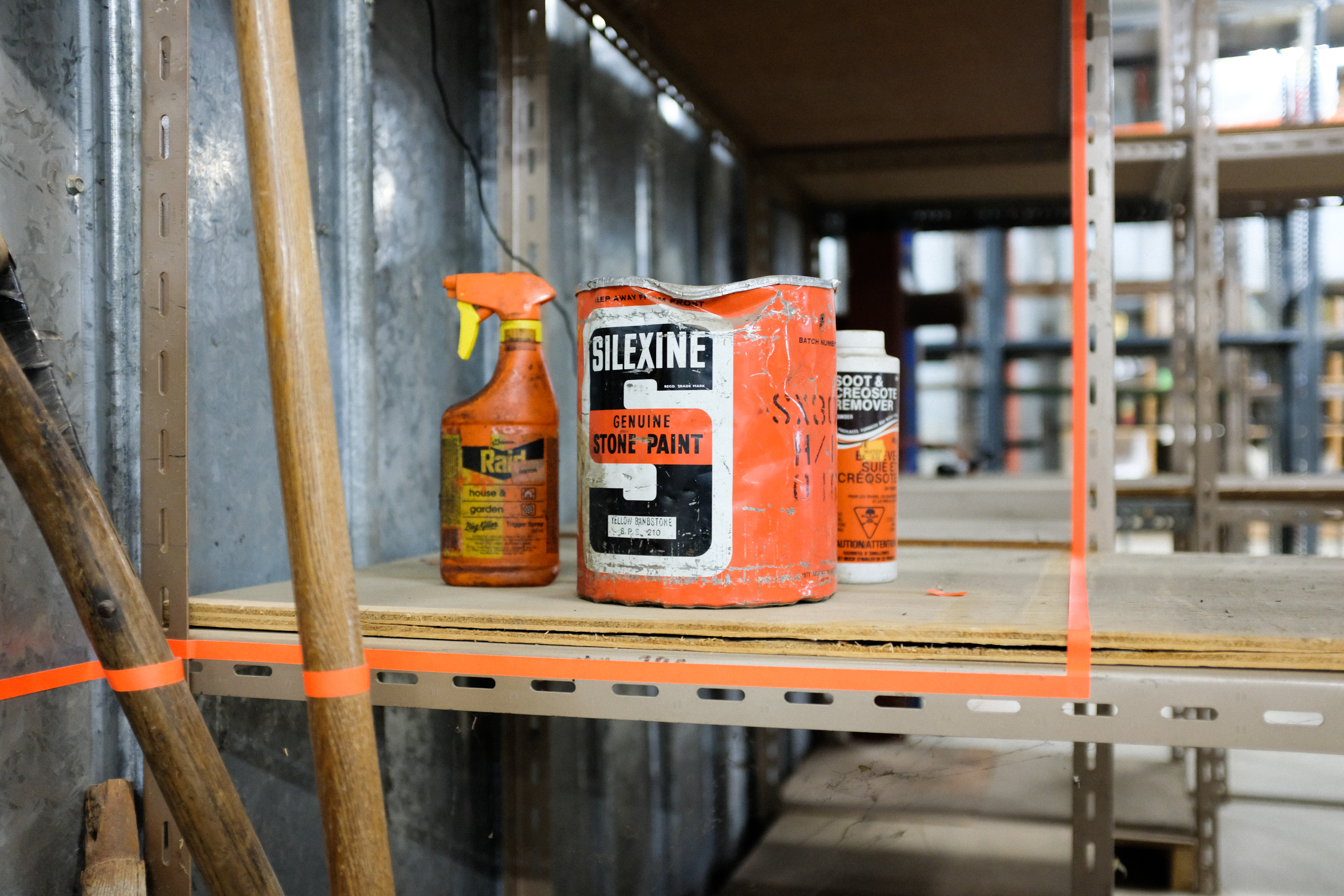 Using fluorescent spiking tape to “mark the scene,” we appropriated the aesthetics of Ribtor, including objects in situ, discarded in the defunct commercial space, to set the stage for each installation.