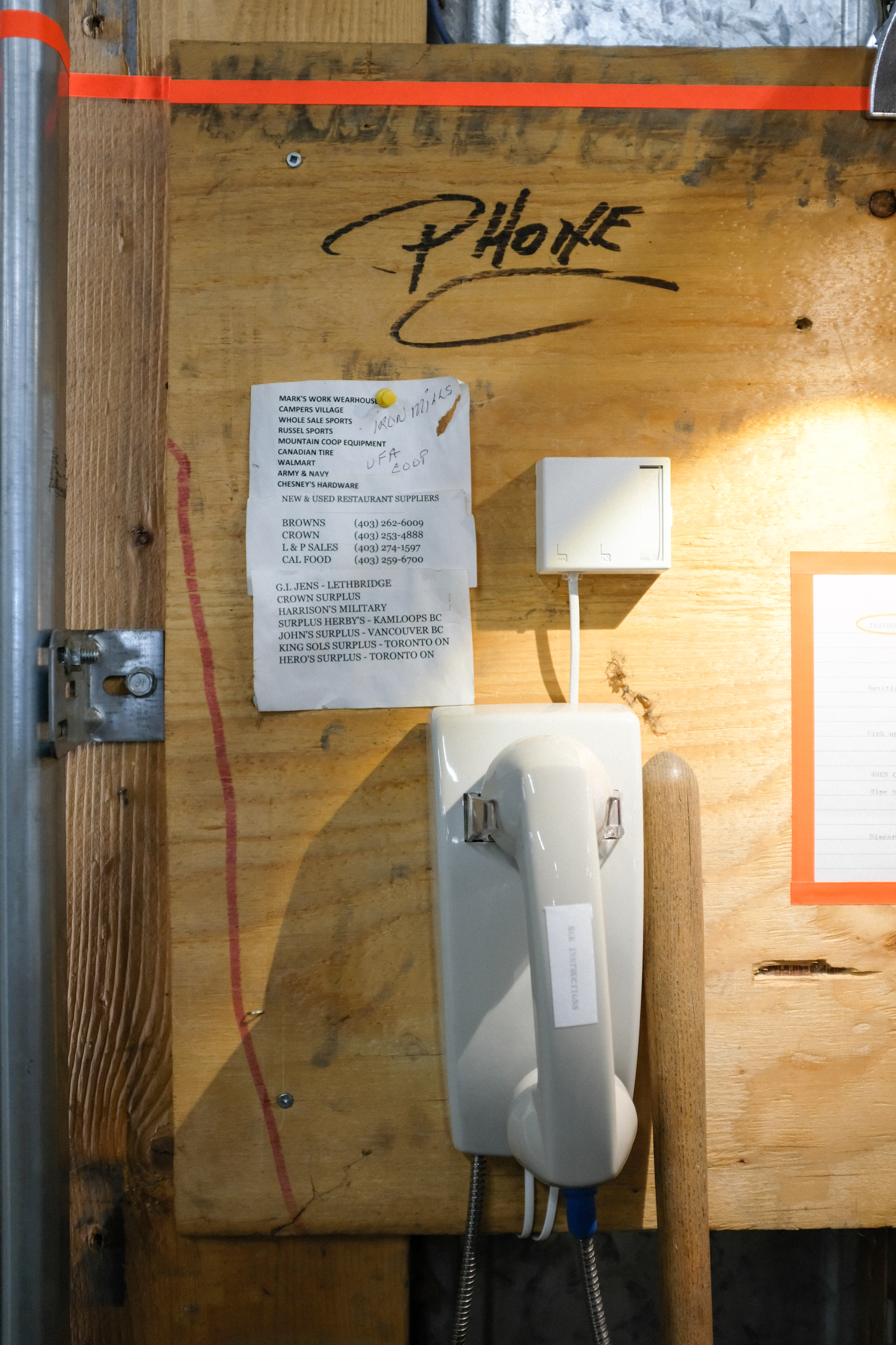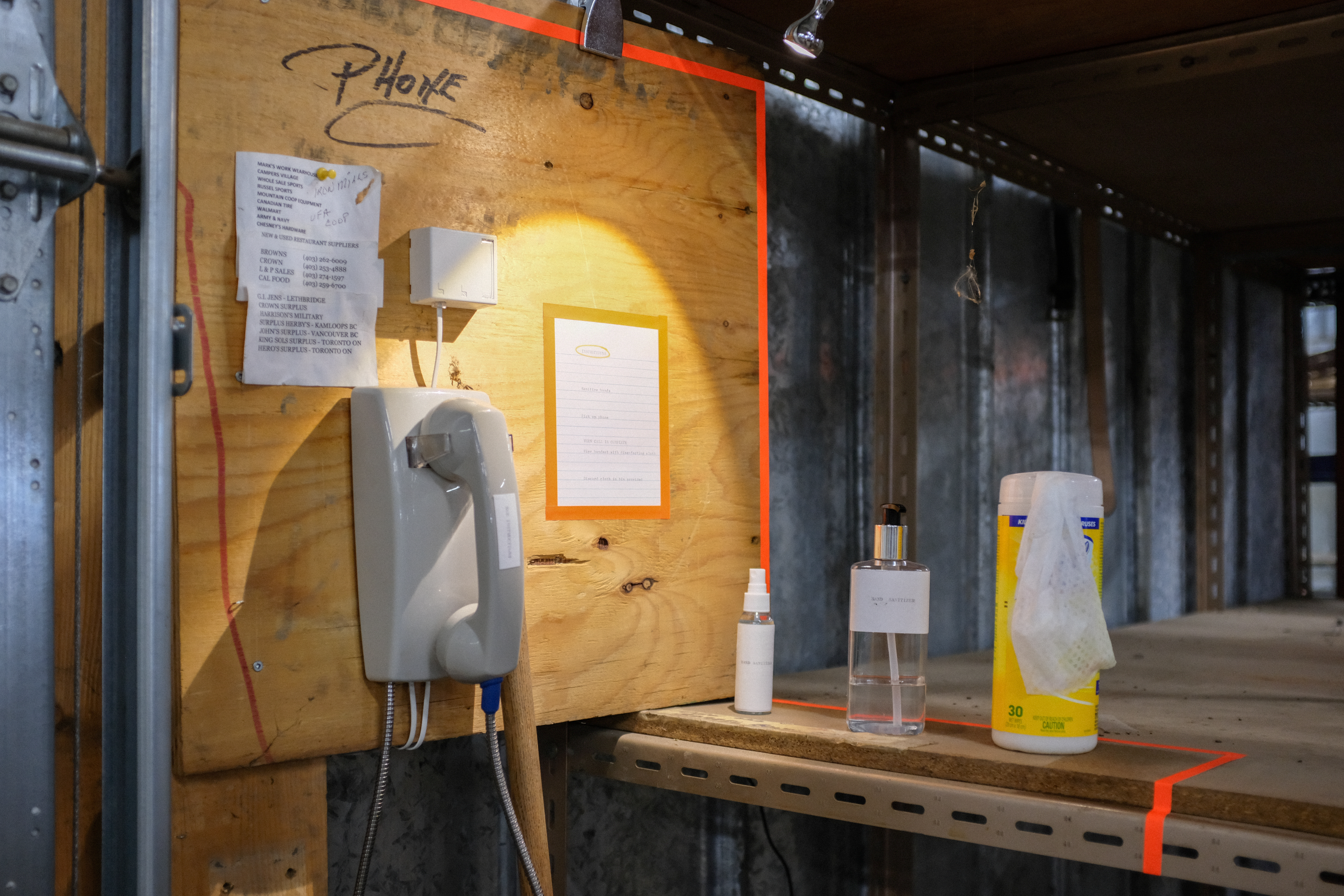 Phoning it in is a temporary phonetic installation for “Killing Me Softly,” a group exhibition at Ribtor, the defunct commercial warehouse in Calgary/Mohkinstsis, locally infamous for carrying strange, rare, and outmoded esoterica. Closed since early 2020, the vacant space was co-opted for an art exhibition by pop-up organizers Kyle Marks.