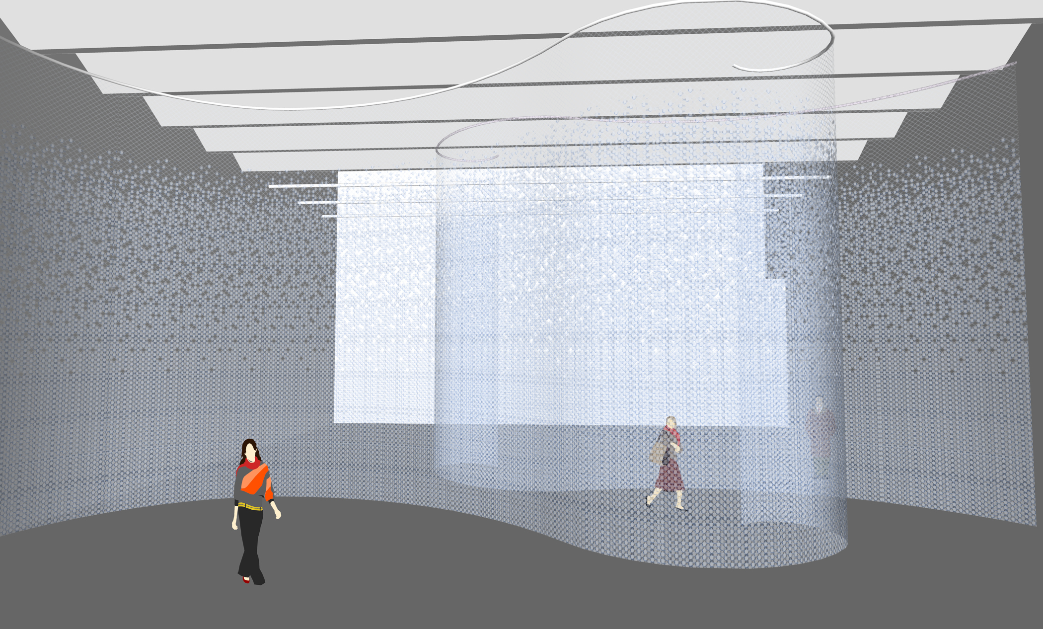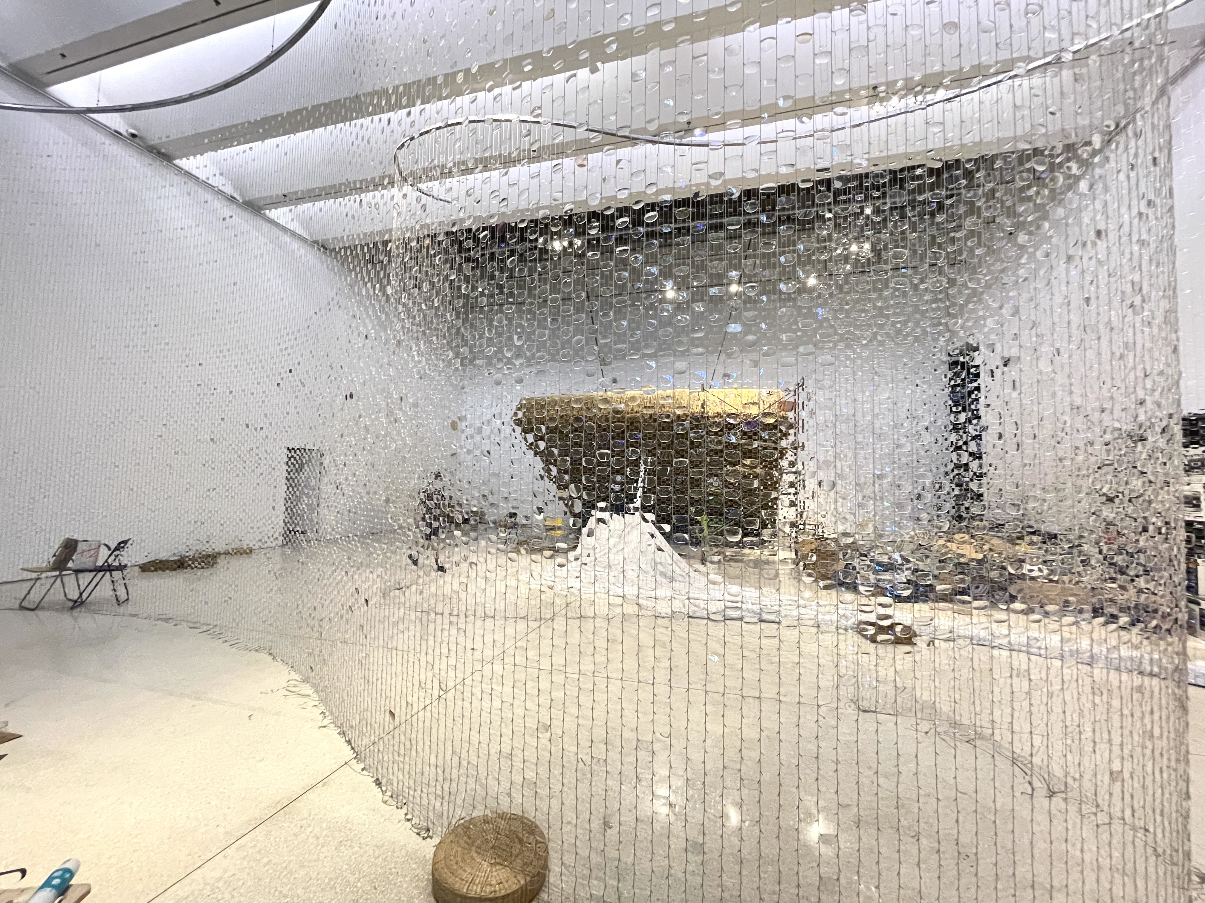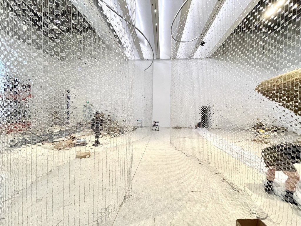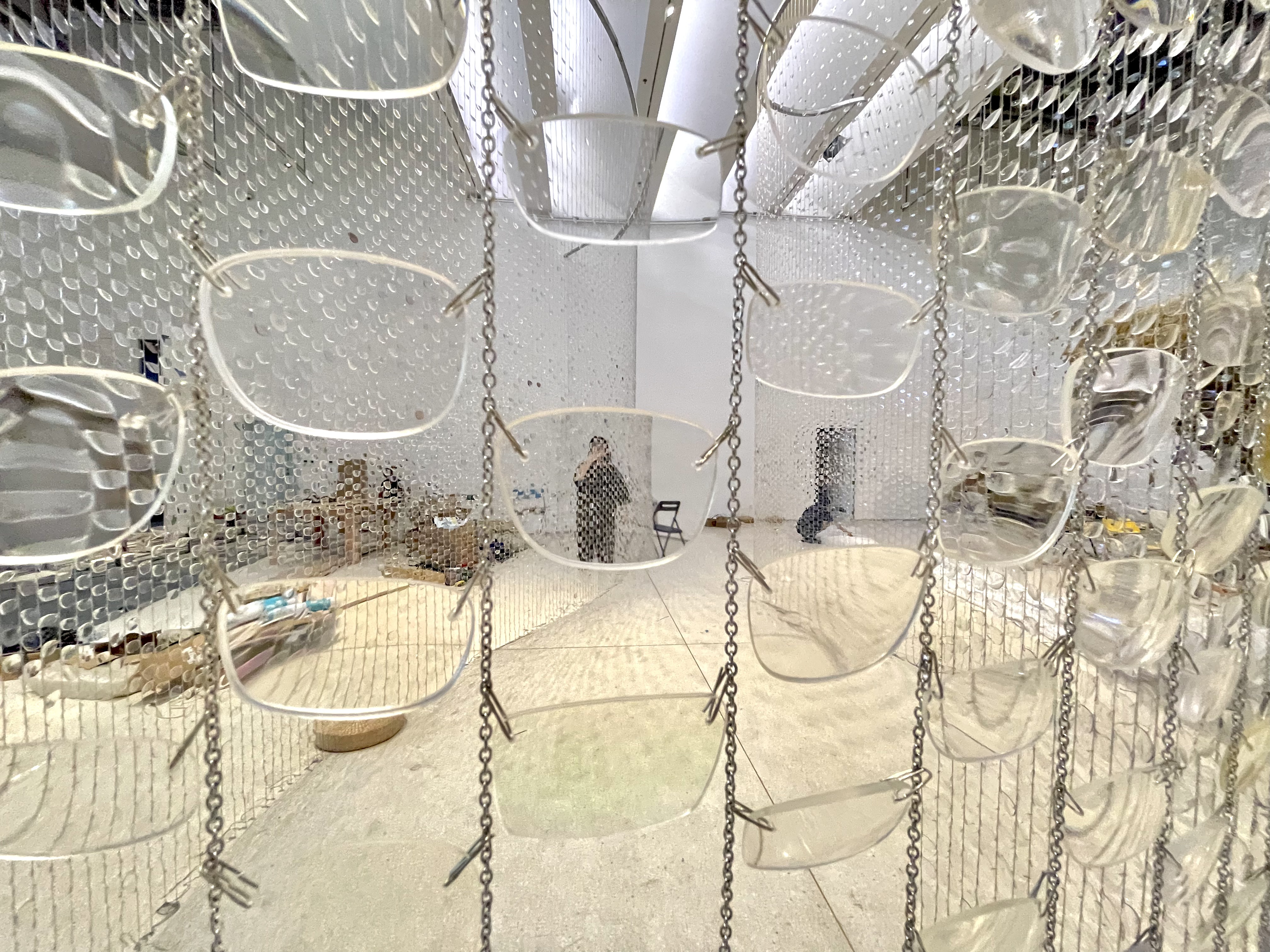 Meanwhile, a team in Beijing worked to install ~30,000 eyeglass lenses into two massive curtains bisecting Times Art Museum.