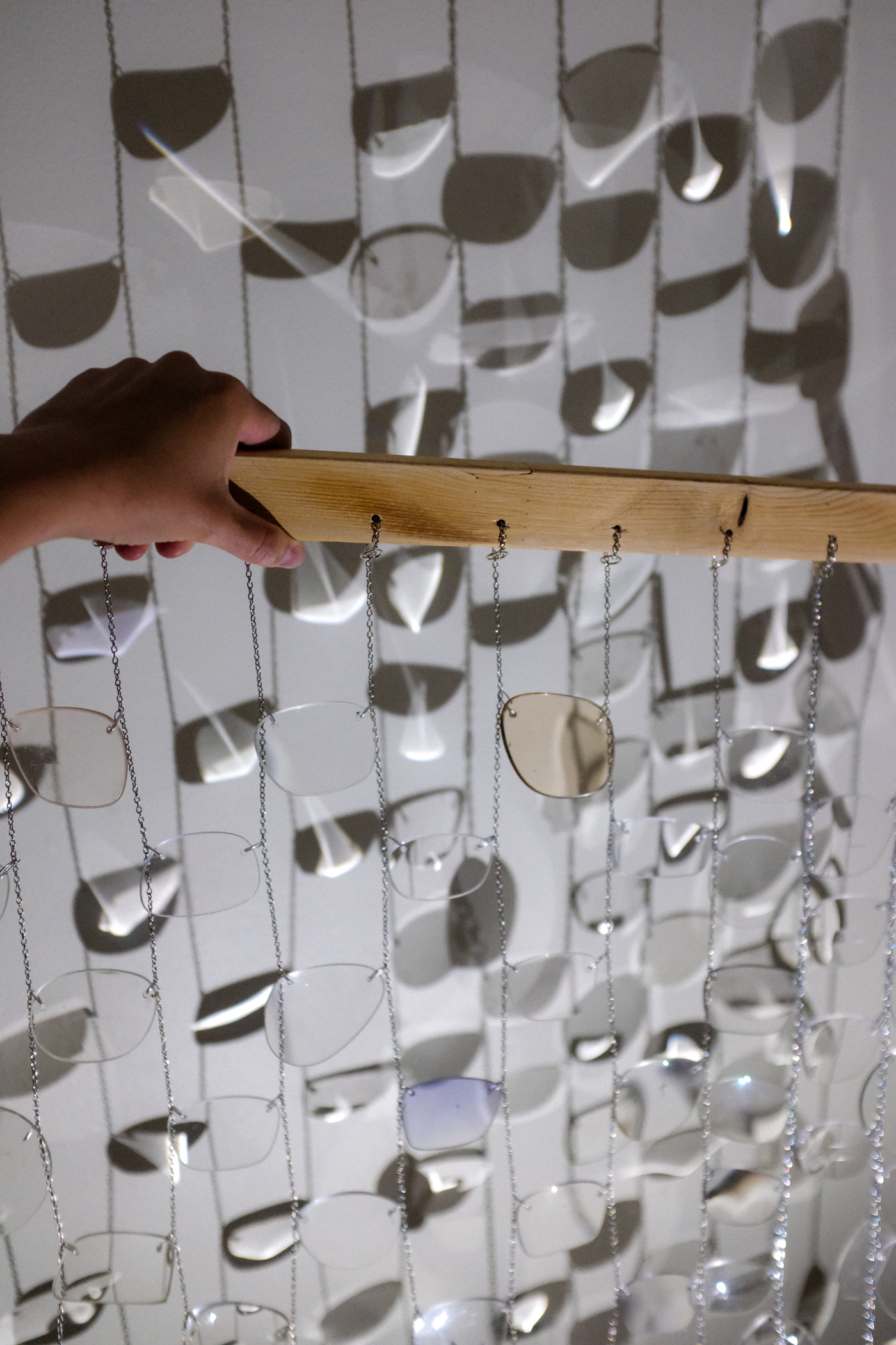 Our eyeglass lenses for And Between Us, An Ocean were sourced through two processes: in China, eyeglass lenses were gathered from factory defects, unusable for market purposes, collected by the gallery team in Beijing/Shanghai.