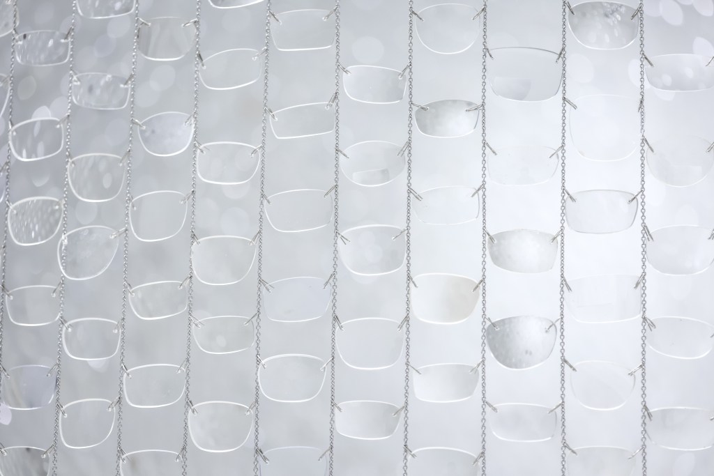 Our sincere thanks to CLERC (the Canadian Eyeglass Recycling Centre) for contributing eyeglasses, and the WAVELENGTH team (especially Liya Liu & Yuqi Wei) for coordinating, fabricating, and installing the artwork. Thanks also to Pera Museum in Istanbul for commissioning the first eyeglass artwork in this series in 2015, sea/see/saw.
