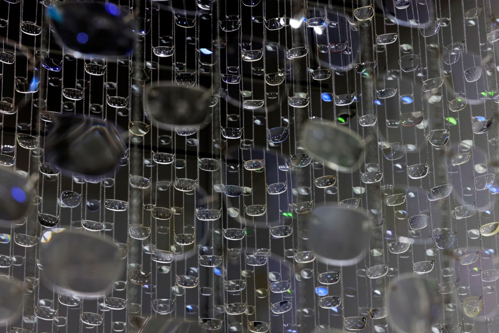 And Between Us, An Ocean speaks to points of connection and separation; despite thousands of prescriptions, each one tailored to one person’s particular eyes, the installation invites an examination of our collective vision. What faint ghosts are carried by such intimate objects – windows on the world for the audience of one? How is our shared reality shaped by so many perspectives of the same place and time? Removed from their original purpose, the eyeglass lenses implicate something specific about the mass and scale of our human experience, and the power of our desire to see the world (and each other) more clearly.