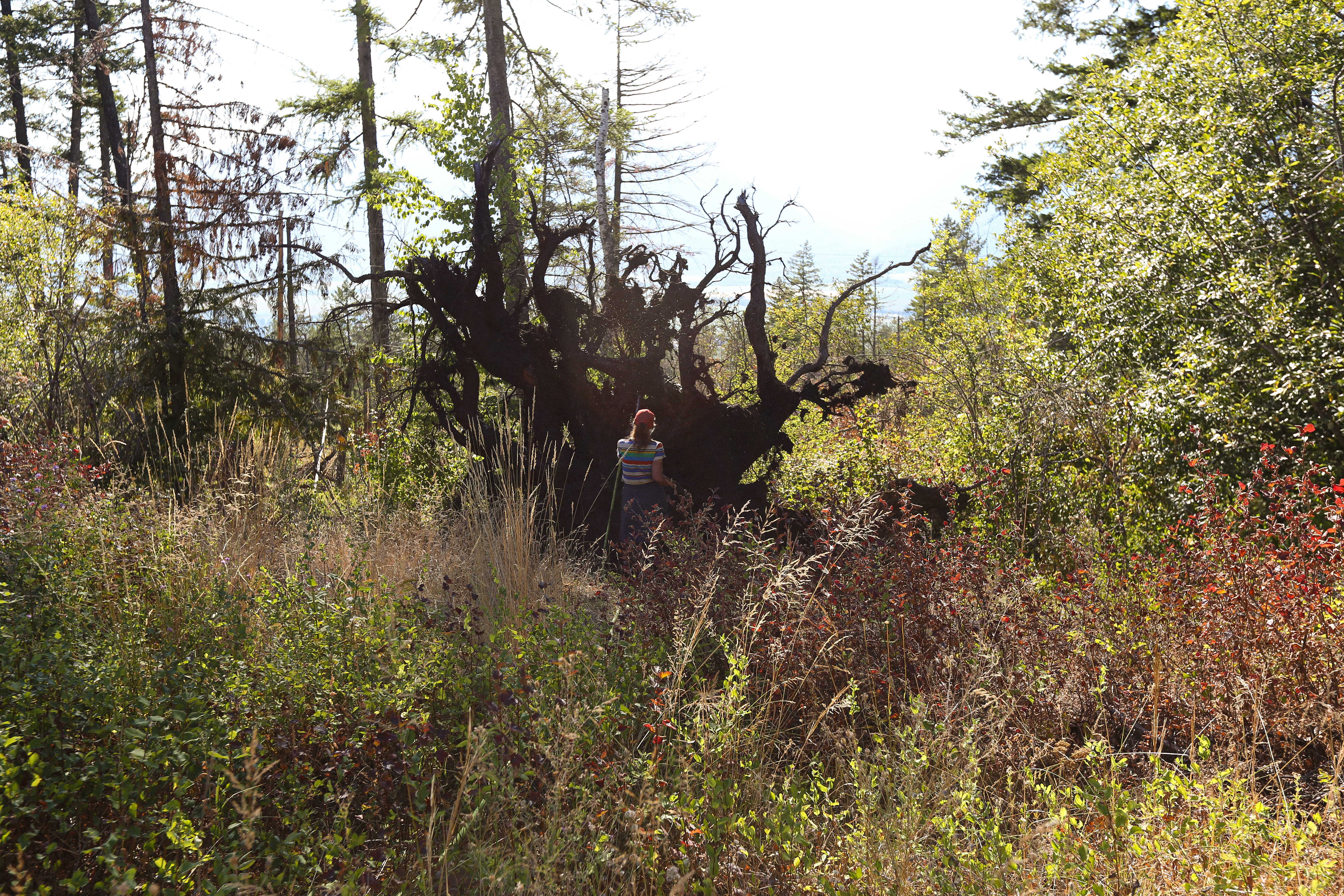 The tree had blown over in a wind storm and it’s thick, serpentine roots splayed like tendrils in the air, caked in dry, dusty dirt. The resulting structure was imposing, architectural, and inviting, resembling a forest galaxy or subterranean octopus – a home for spiders, rats, or burrowing creatures.