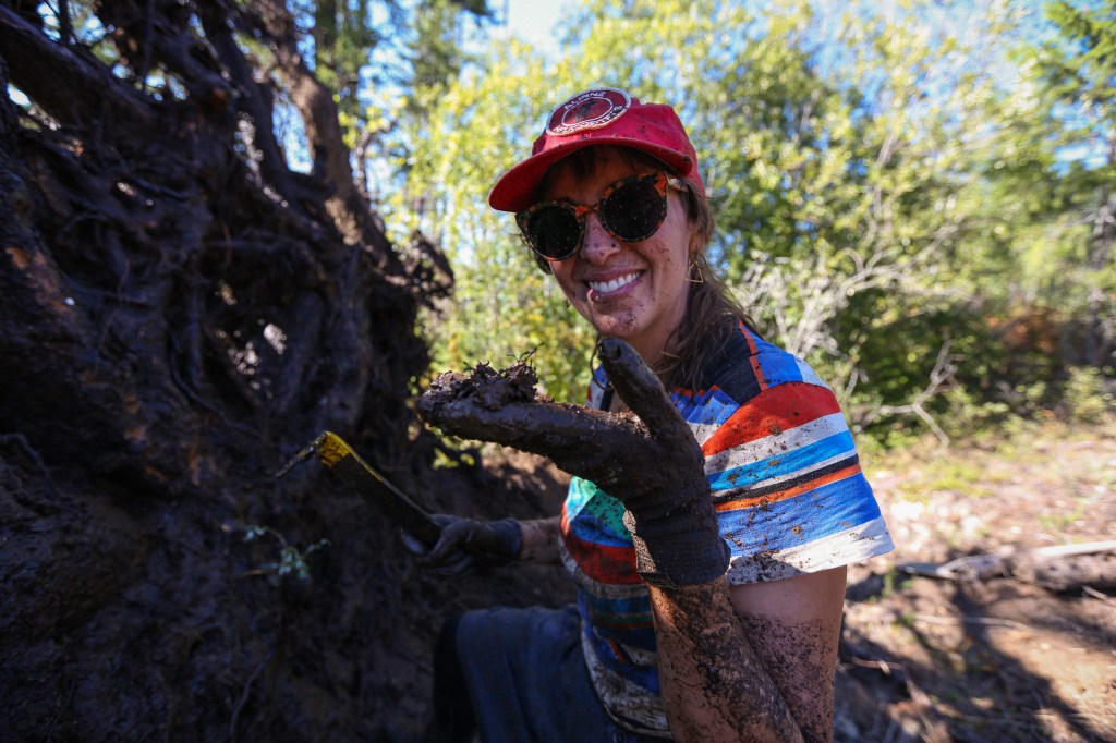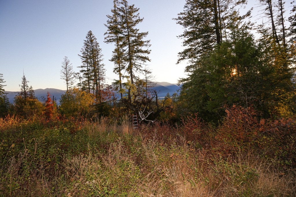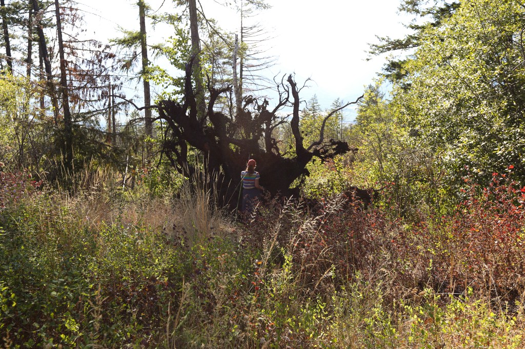 The trunk and branches were still attached, but fire-safety will soon require their removal, destined for the sawmill and decking, firewood, or the sculptural material of other artists at EoD. Root masses are more complicated, prohibited from burn piles in BC. It’s likely that this structure will remain in the forest for many years to come.