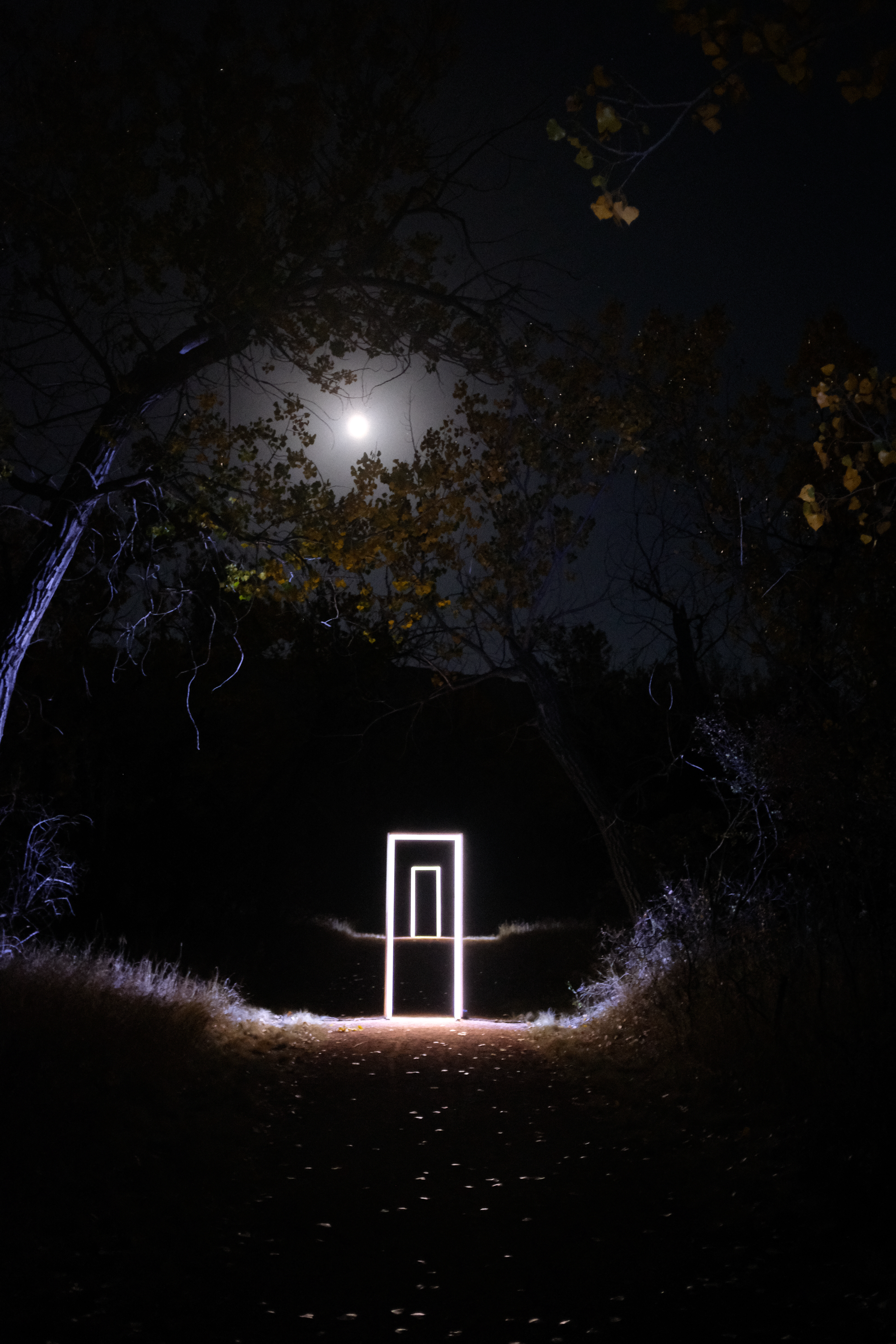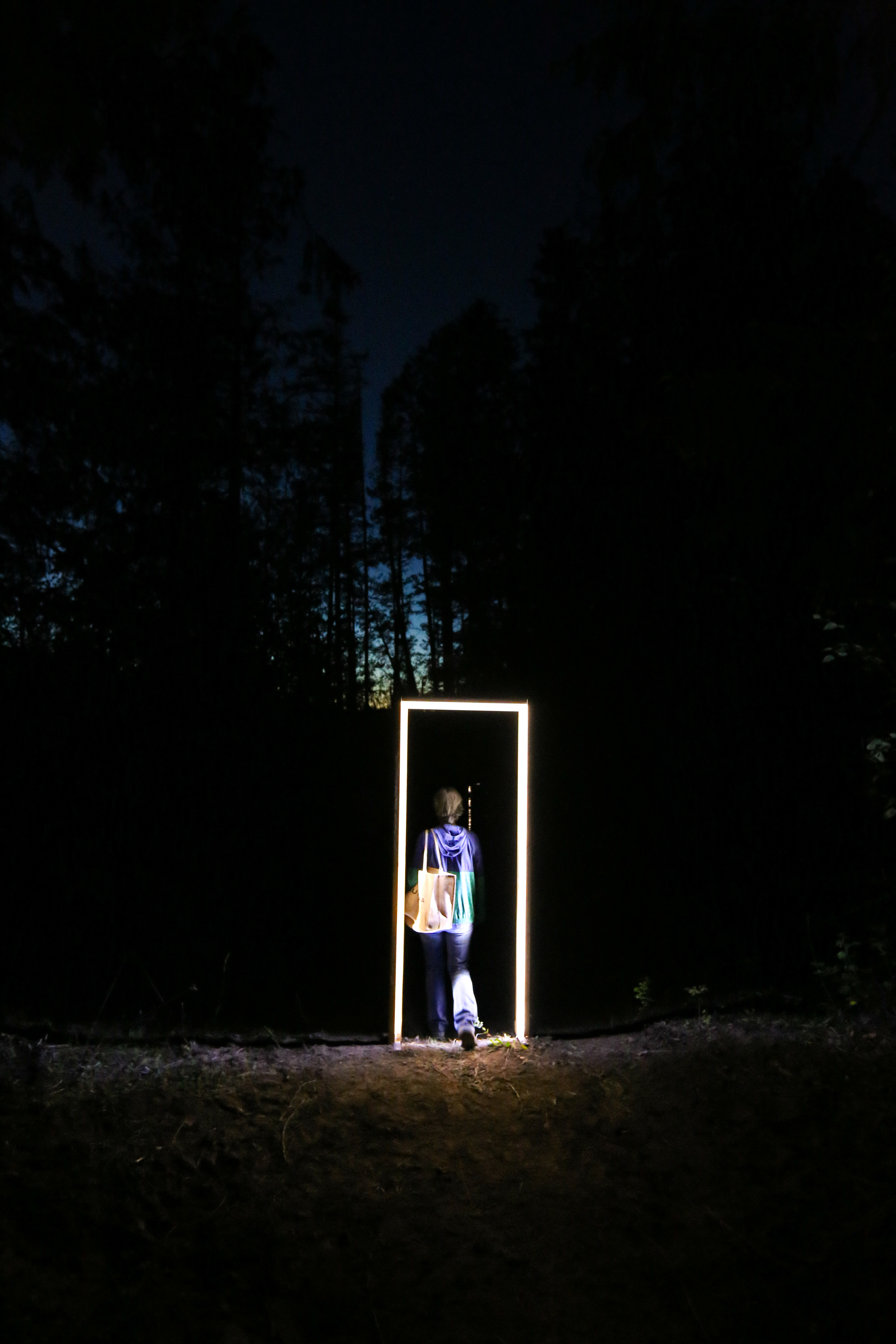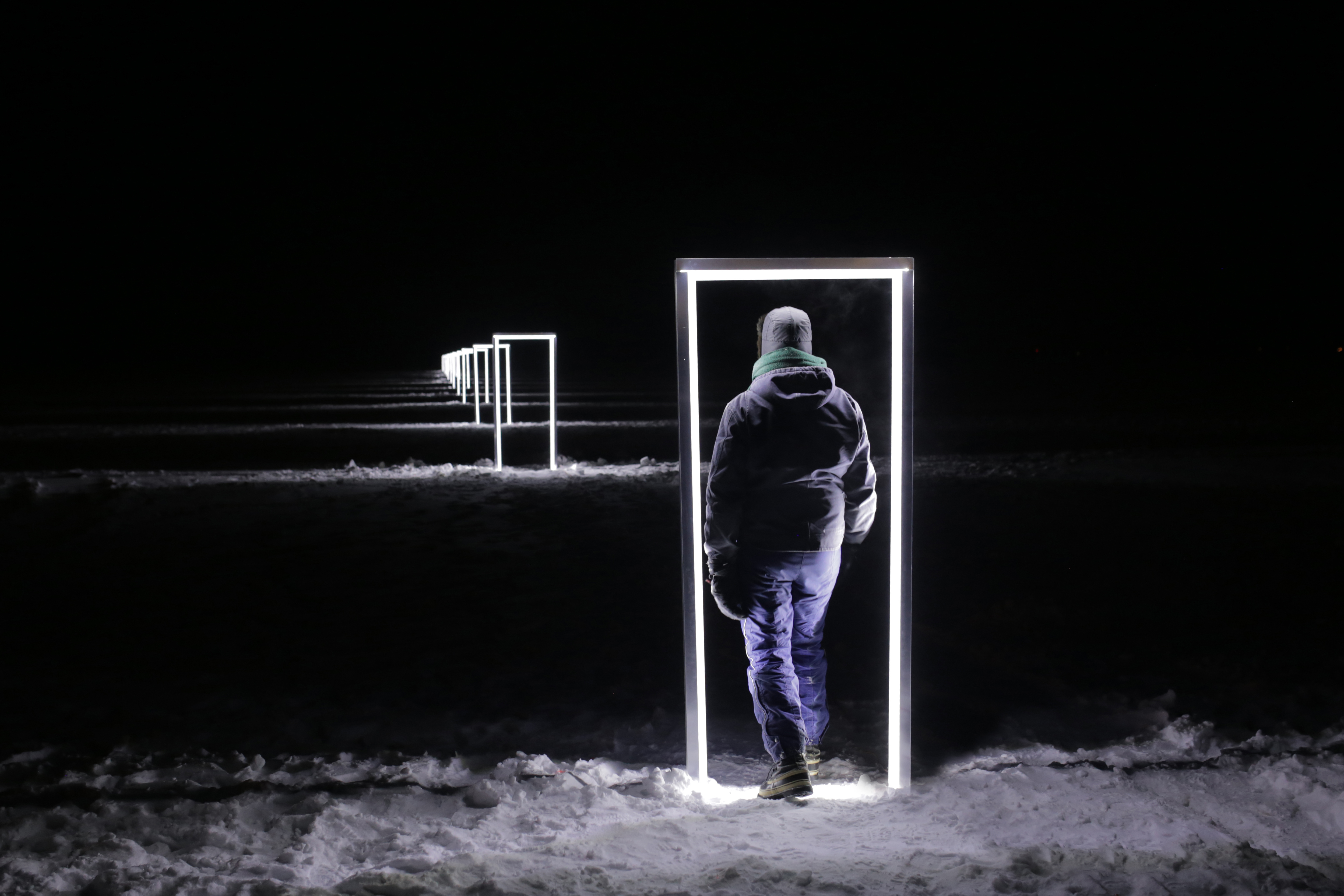 Friends and visitors wandered the 1 km route, guided by a series of bright and distant portals, gateways shining like blinding beacons in the darkness.
