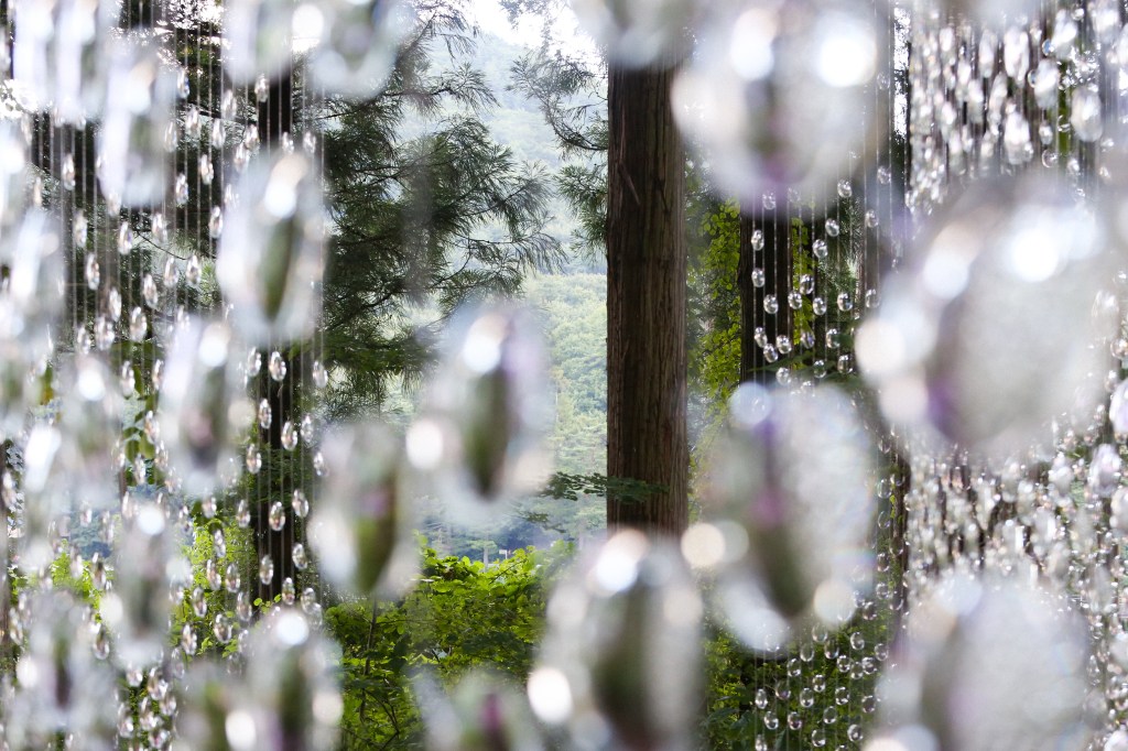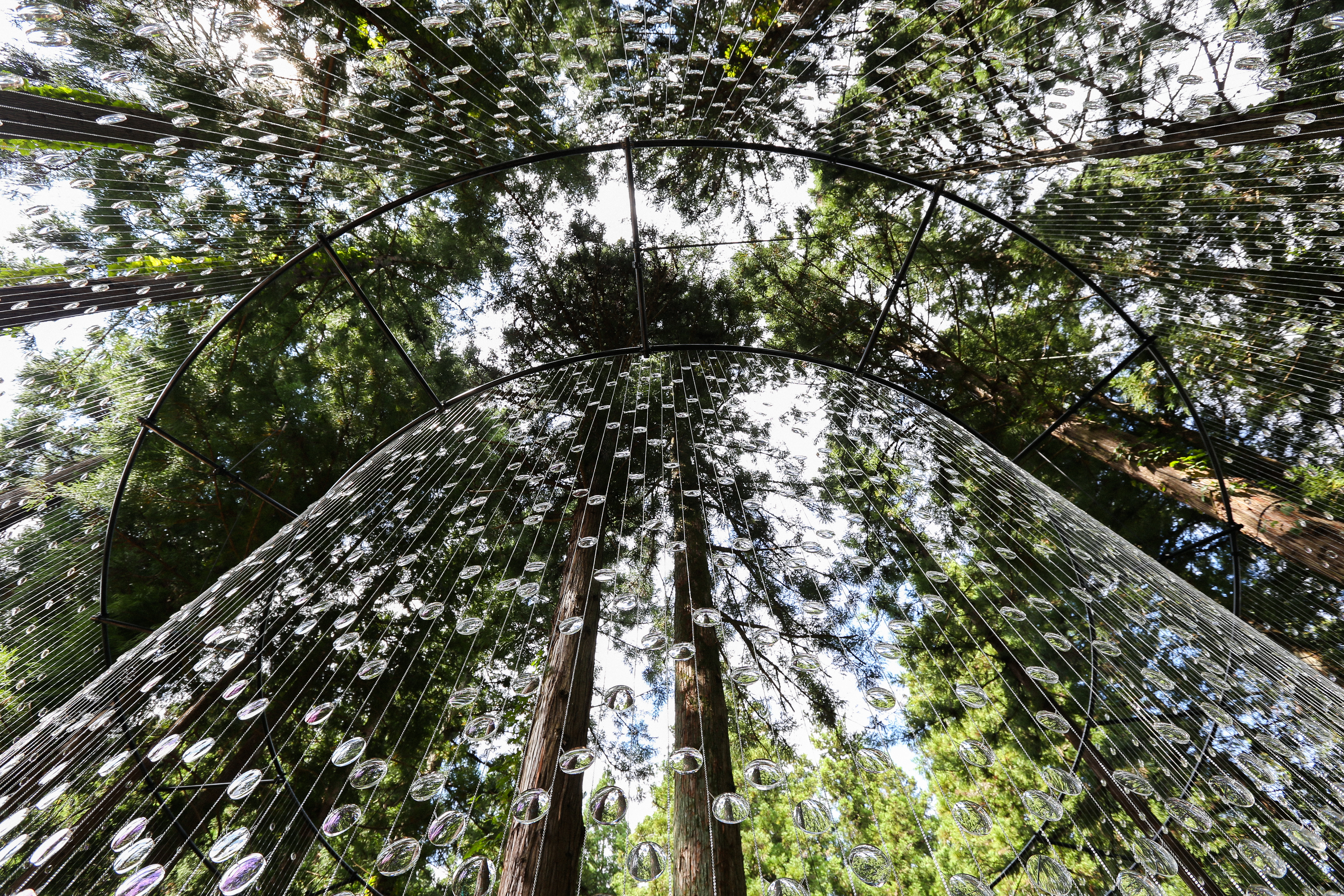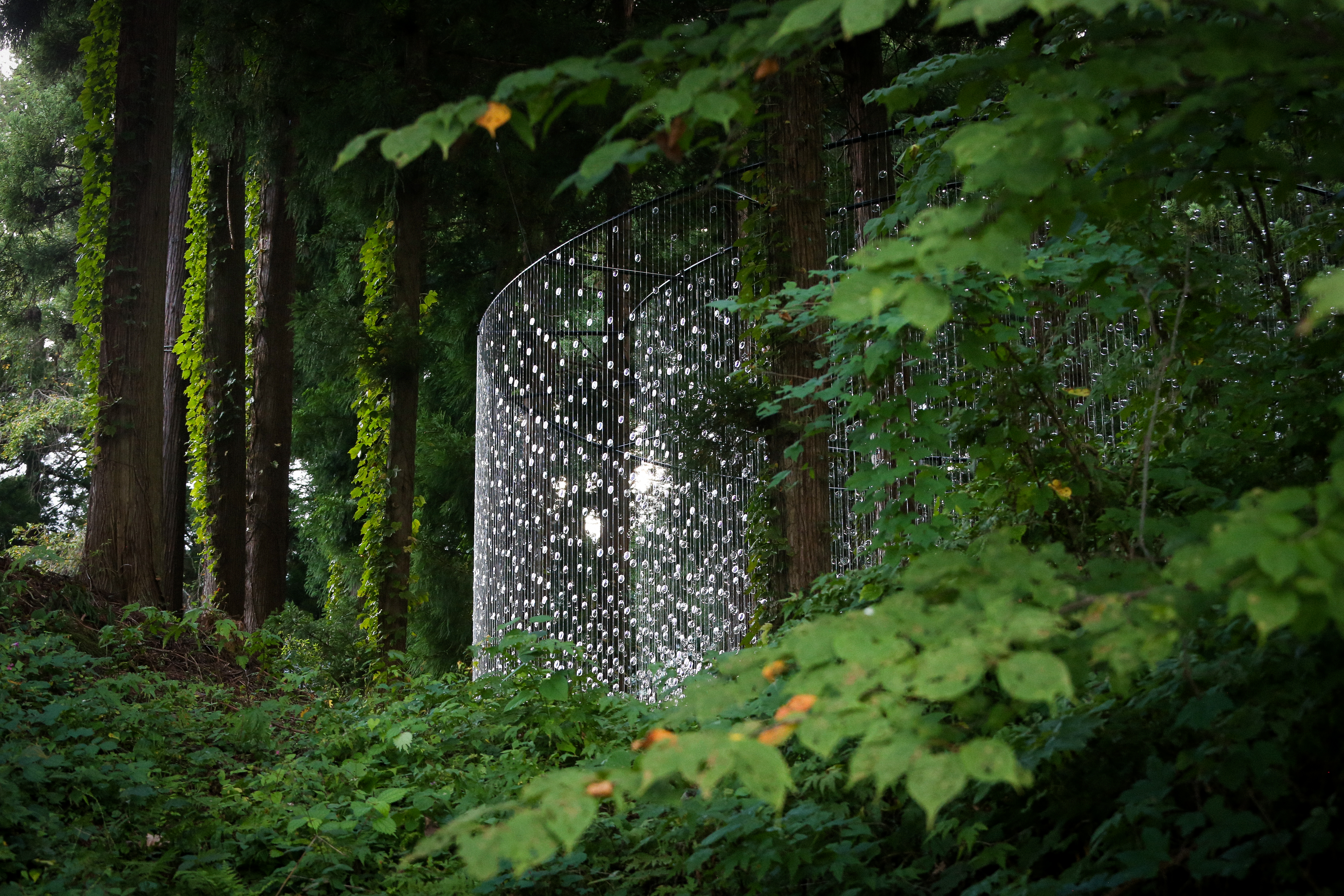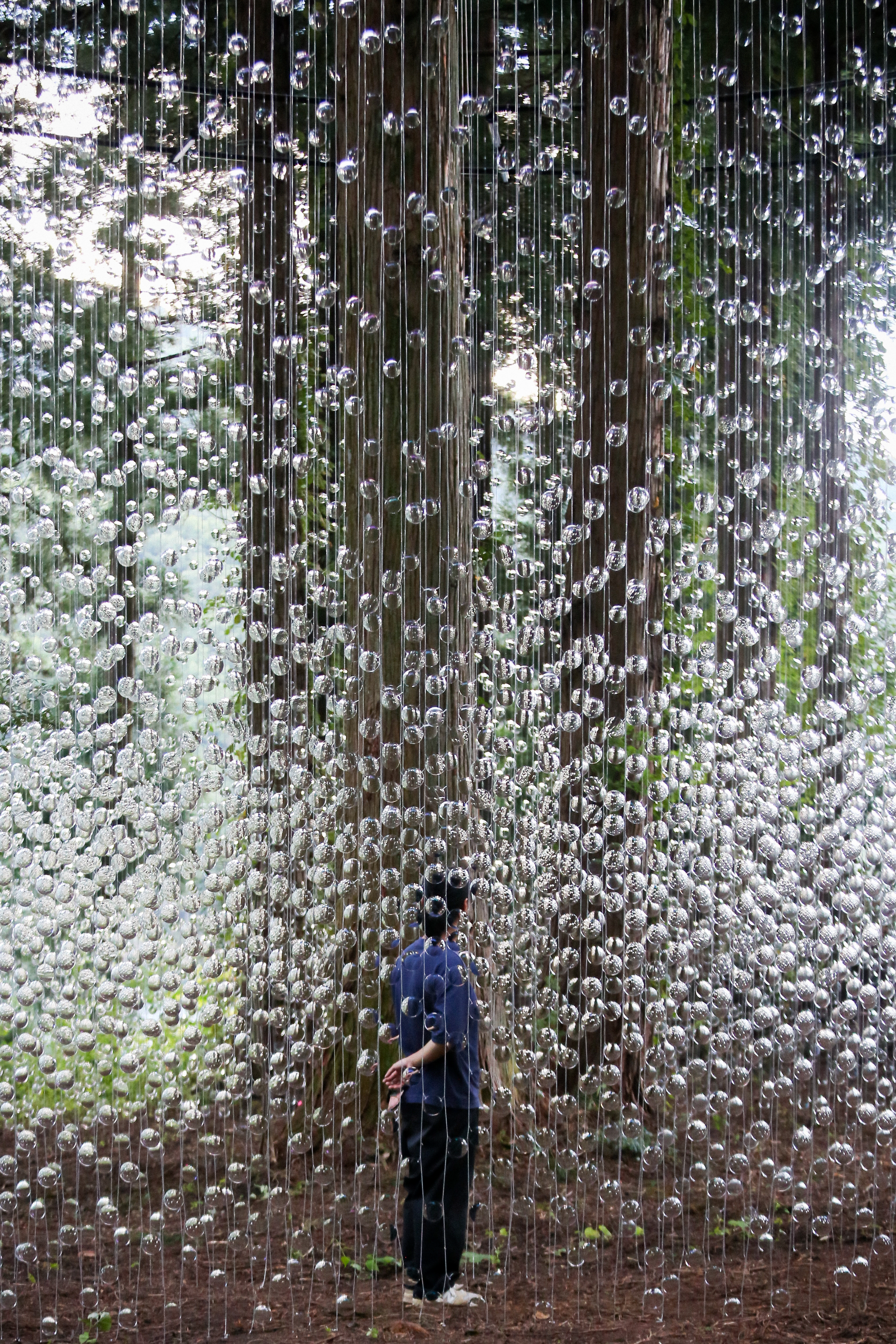 A Whisper in the Eyes of the Storm invites visitors to see what they’d normally overlook. The work is installed in a cedar forest behind Nishina Shrine along the shore of Lake Kizaki. The work invites visitors to look at the landscape (and each other) with fresh eyes, seeing differently and peering deeply into the ancient and evolving landscape.