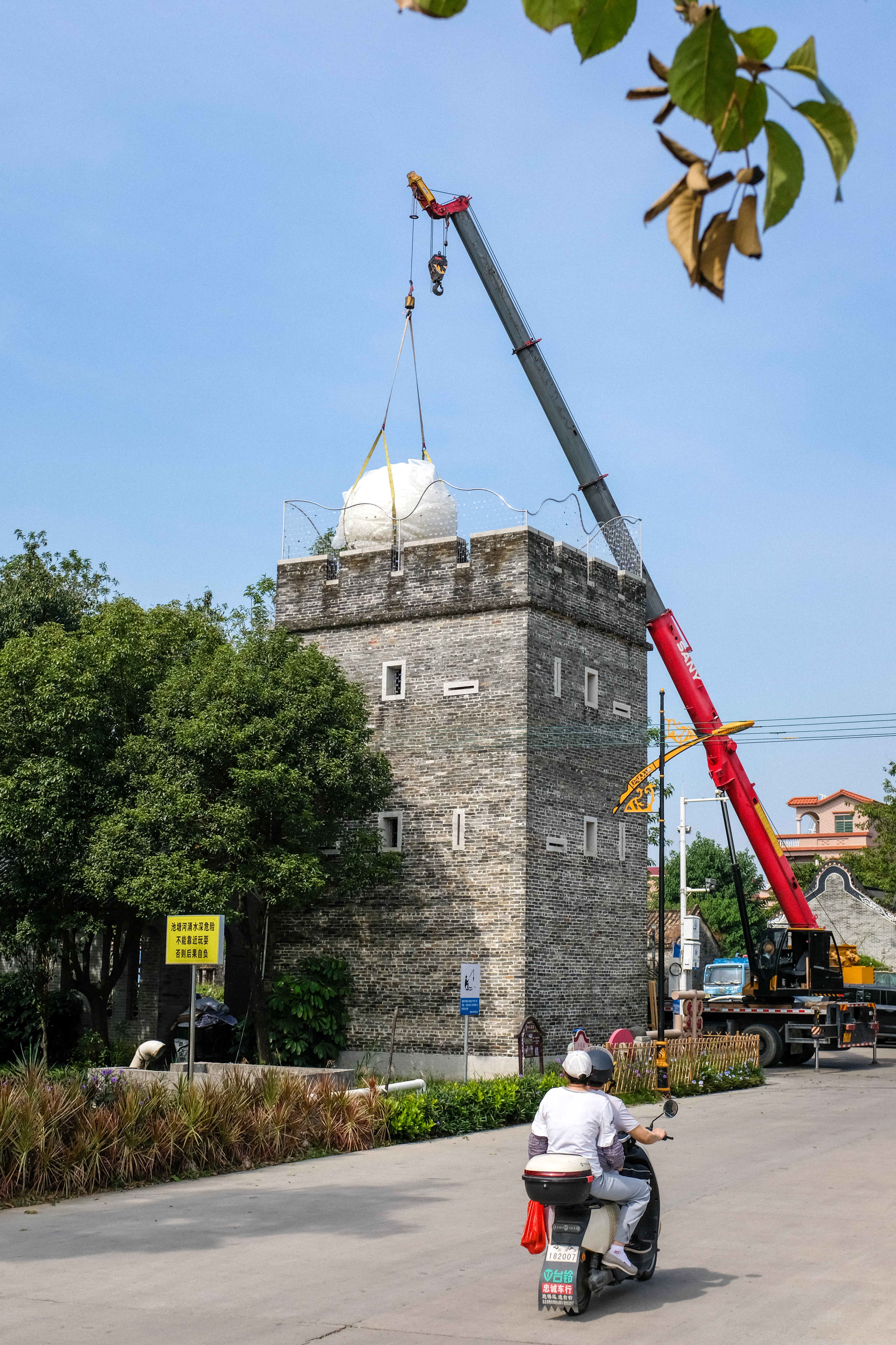 From the third floor, looking up, viewers see a strange and pearlescent shape – the final chapter of their adventure climbing the tower. The roof of Yan Nan Gun Tower holds the Moon Pearl.