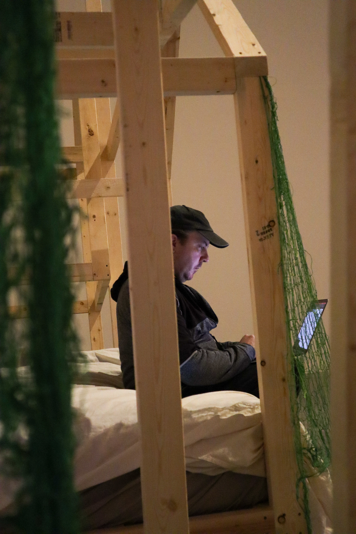 “Upon viewing Deep Dream Superstructure, I was flooded with thoughts about how the act of sleeping, or rather the lack of it, is a vulnerable action. How the time we spend in our beds can evoke significant thoughts and feelings we individually go through, yet this sculpture offered a site where collective feelings are shared.